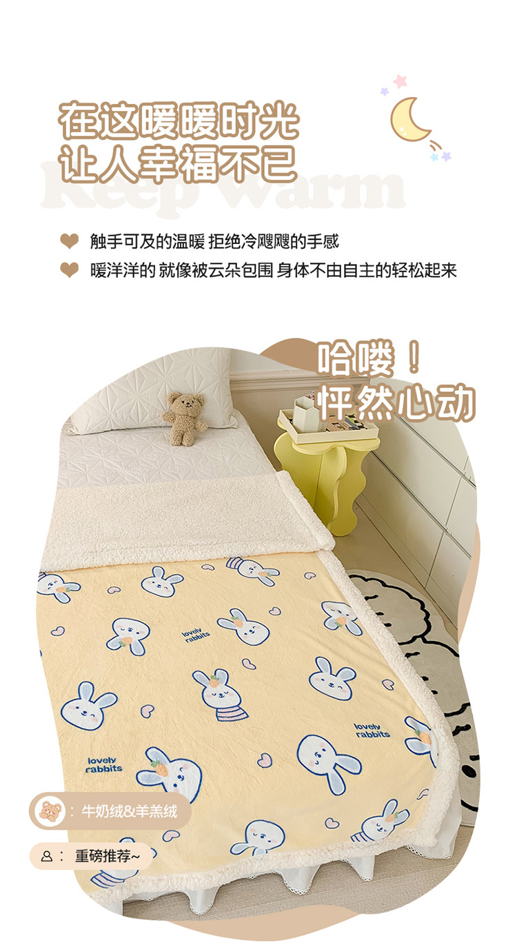 澳萝拉 2022新款牛奶绒羊羔绒毛毯 萌萌兔