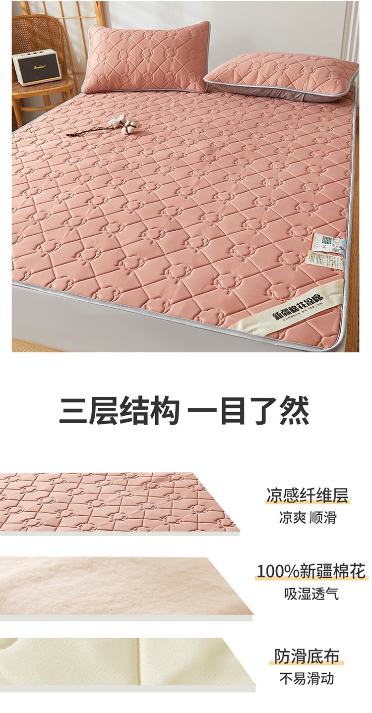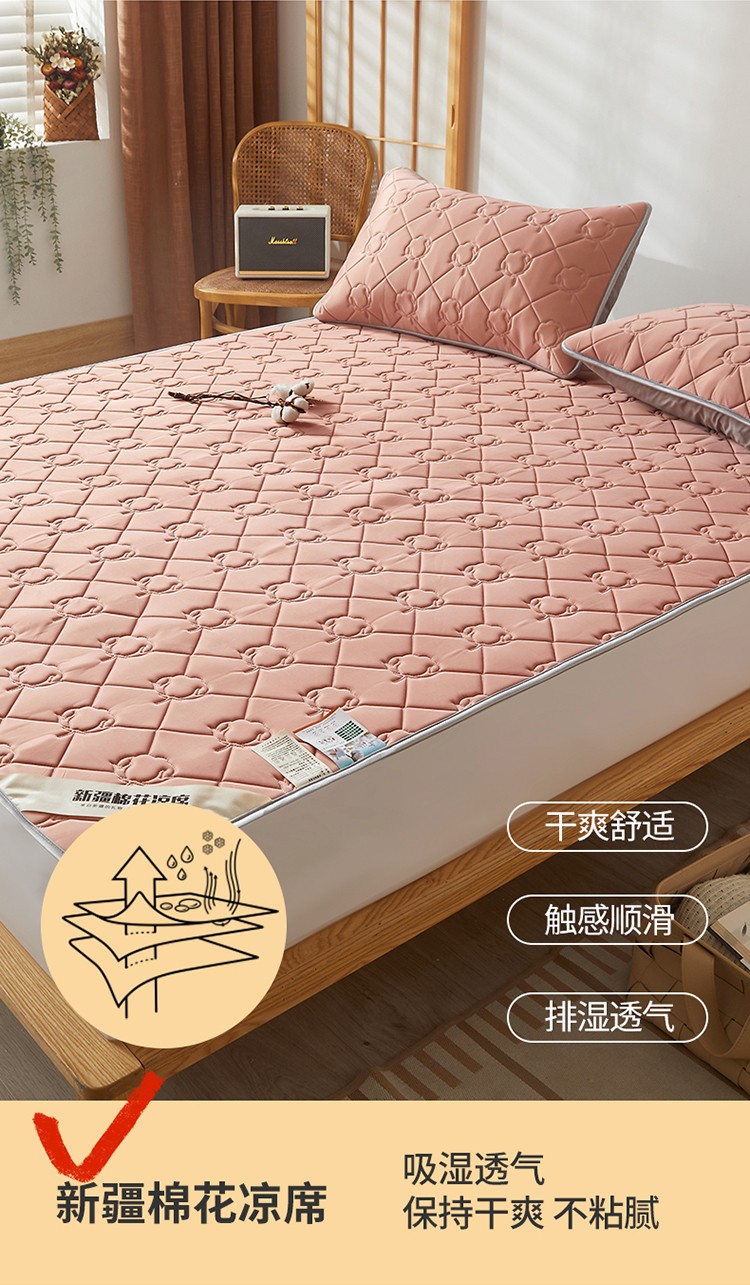 西域种棉人 新疆棉花凉席冰丝凉感丝平铺款加厚床单款三件套纯色水洗芳豆沙
