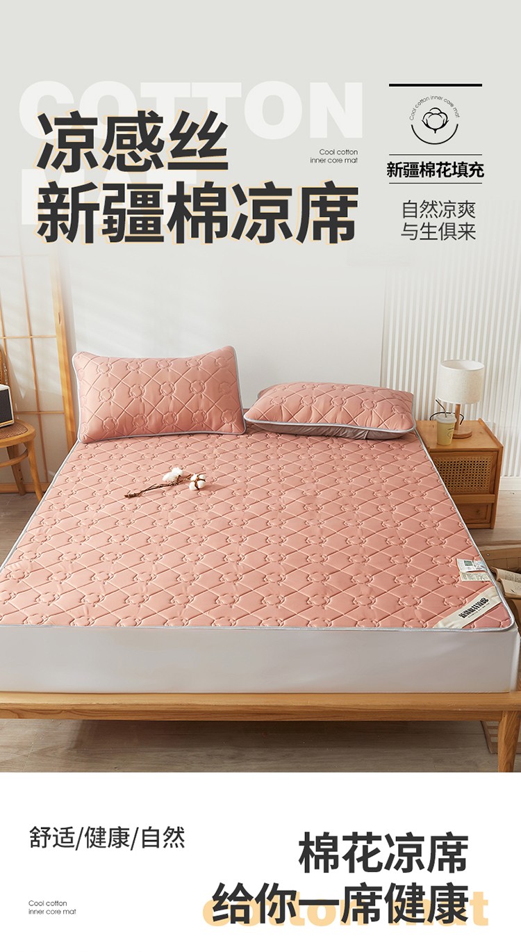 商品名称:西域种棉人 新疆棉花凉席冰丝凉感丝平铺款加厚床单款三件套纯色水洗芳豆沙