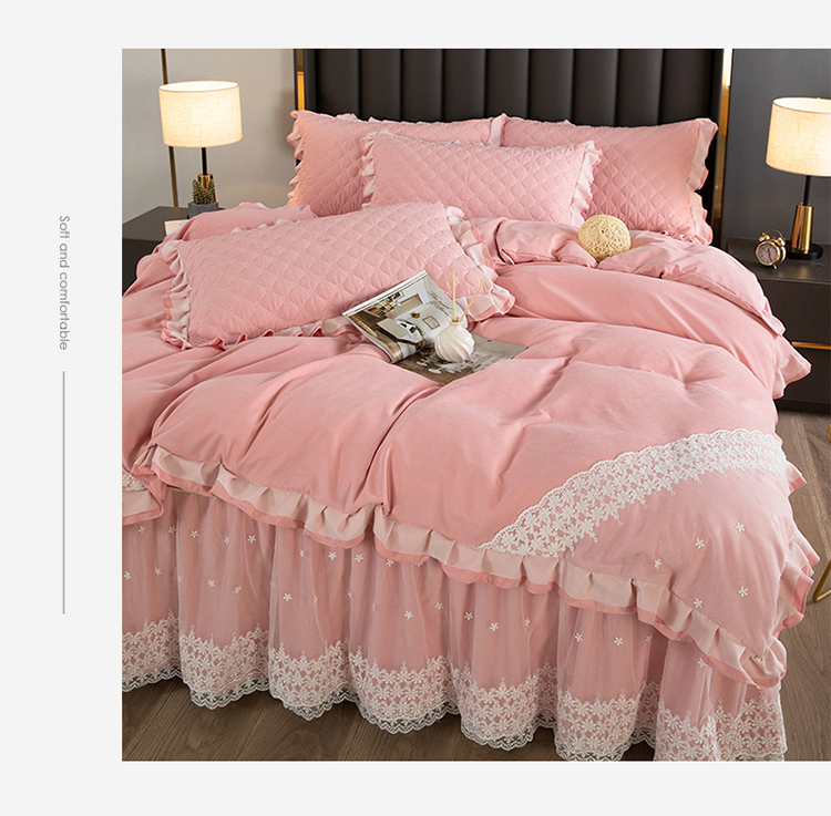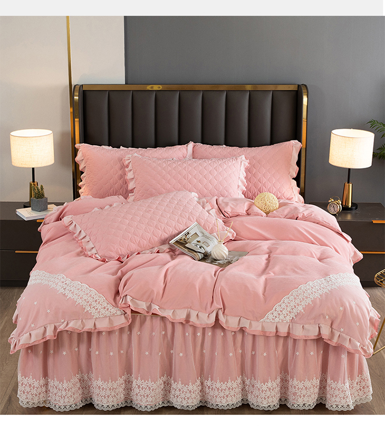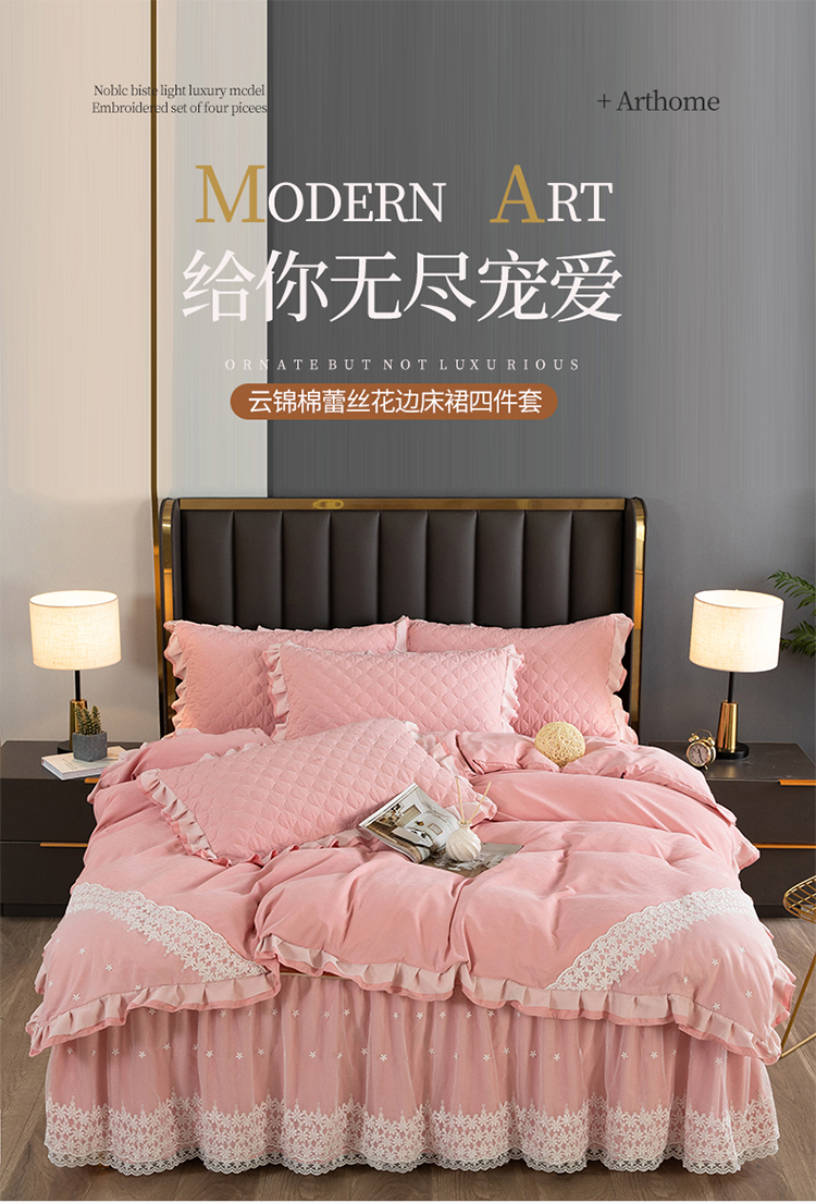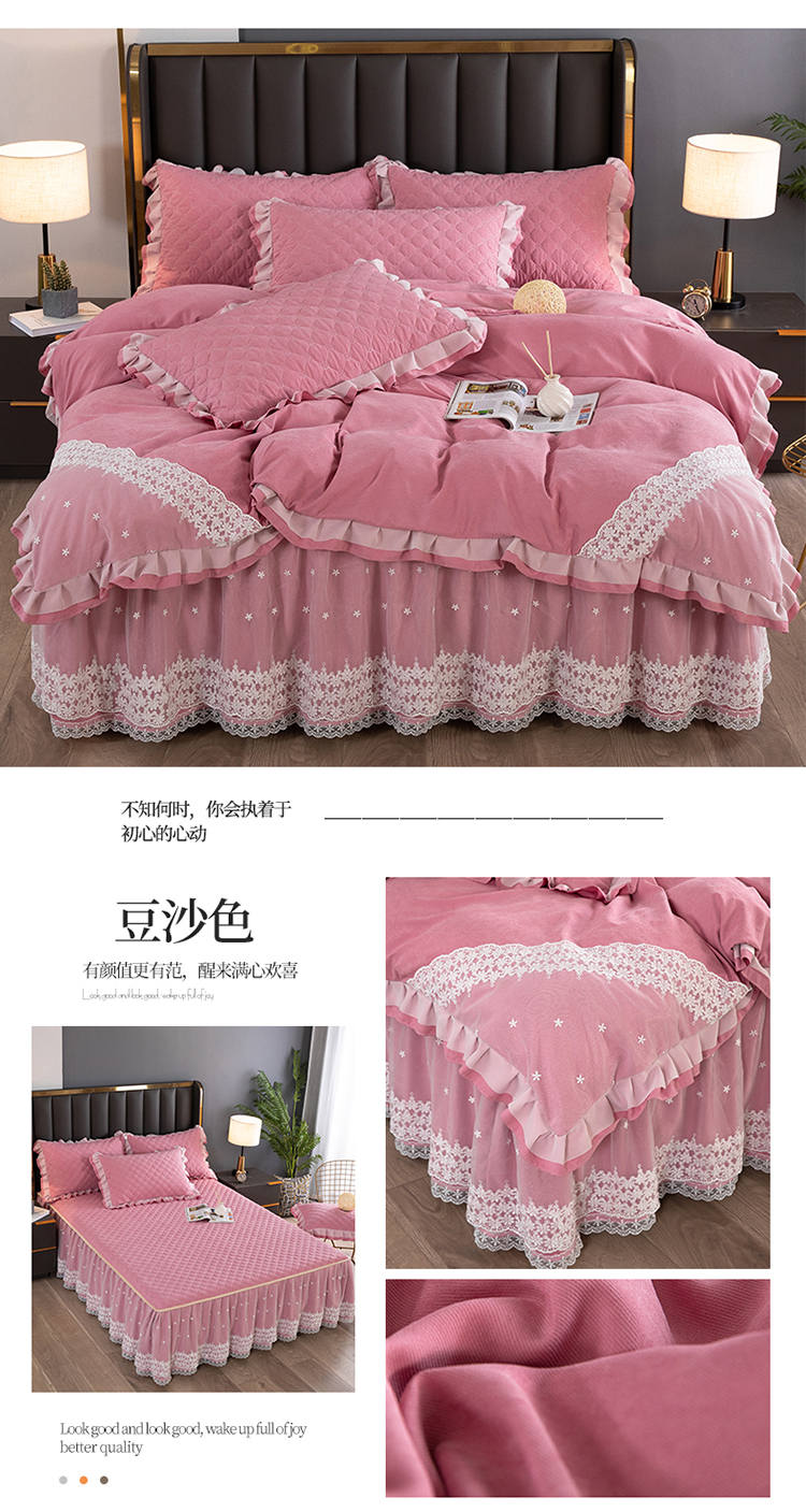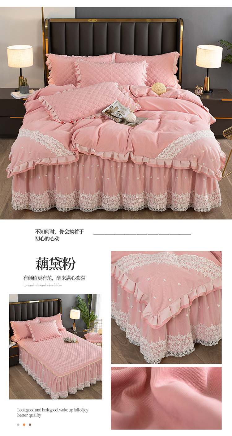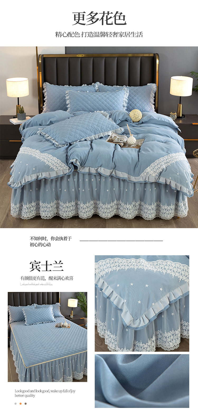 (总)2023新款云锦棉纯色夹棉蕾丝床裙四件套韩版花边被套床罩床盖