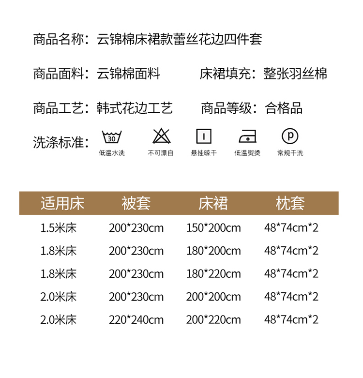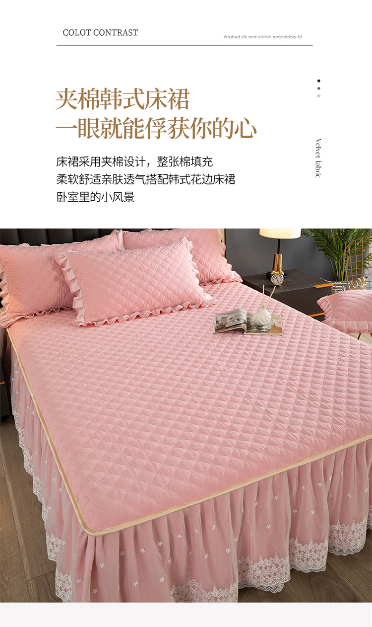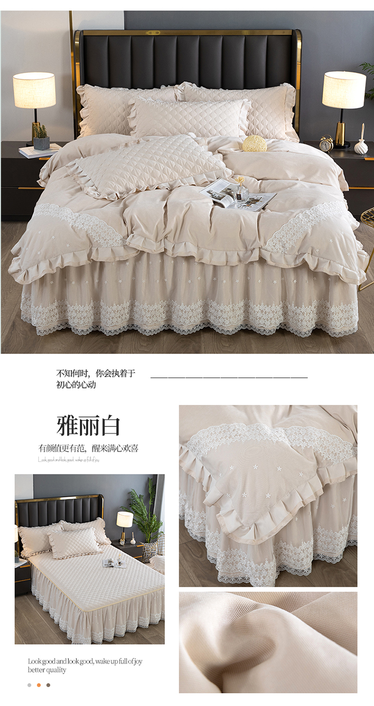 商品名称:(总)2023新款云锦棉纯色夹棉蕾丝床裙四件套韩版花边被套床罩床盖