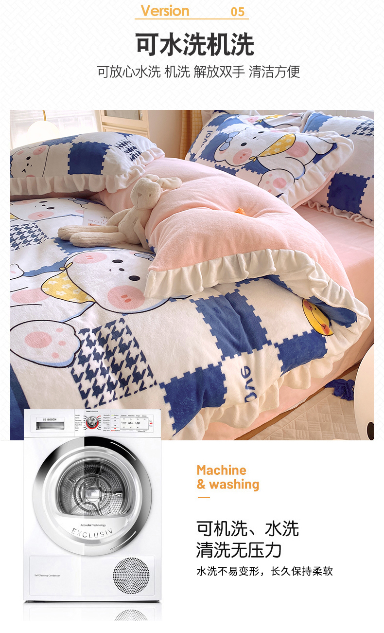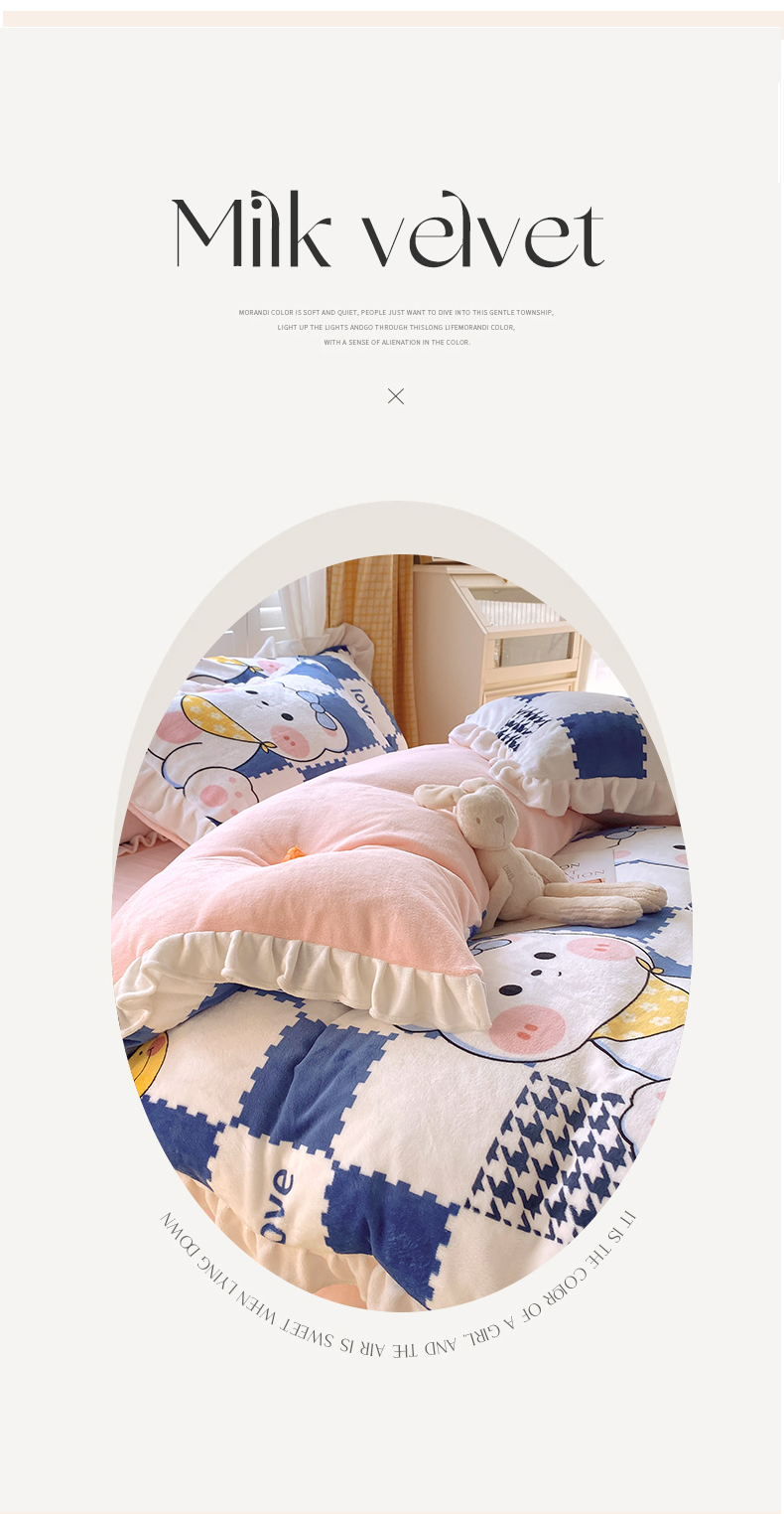 (总)宜家坊 2023新款直播韩版印花花边款牛奶绒四件套,比格熊,草莓兔,春暖花开,告白,加油鸭,流星花园,萌萌熊,牛油果,千鸟格,小女孩,一见倾心,郁金香