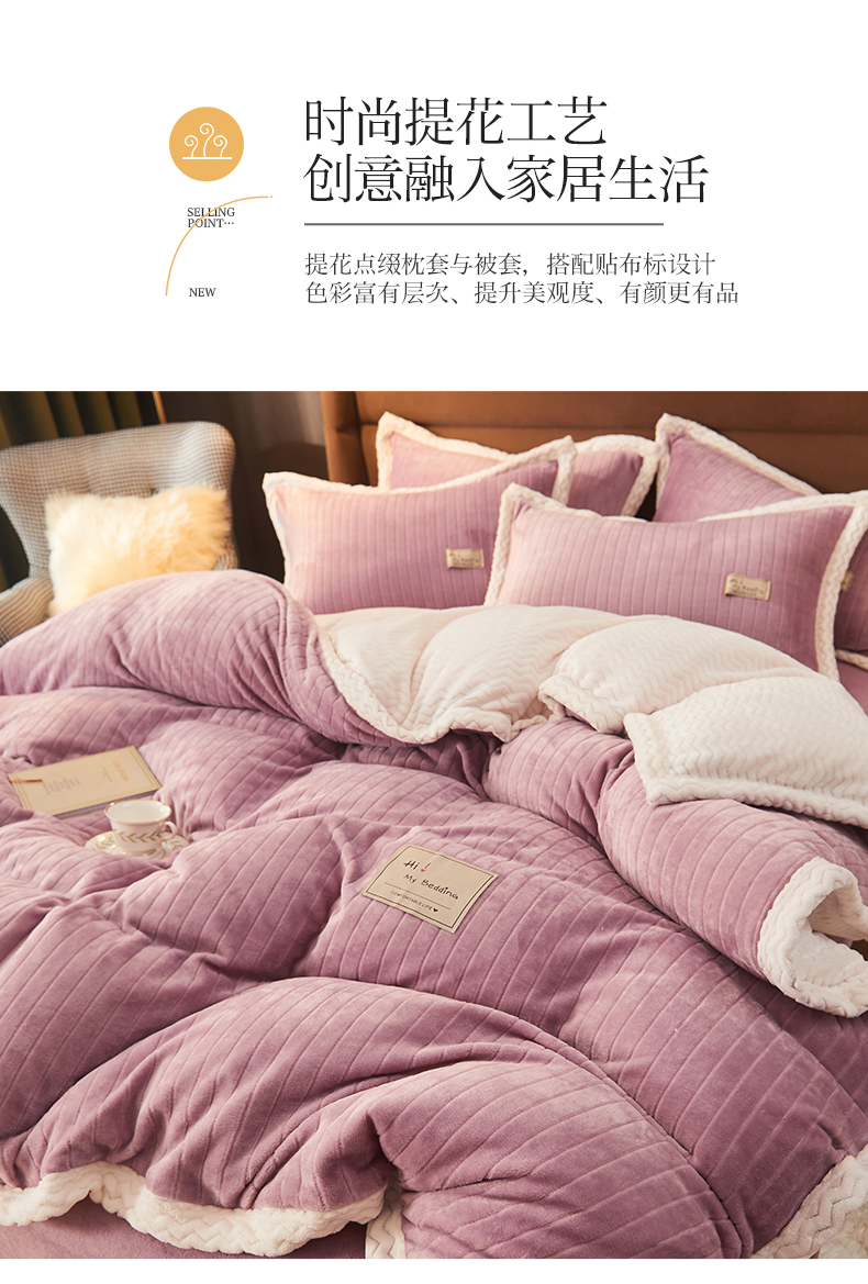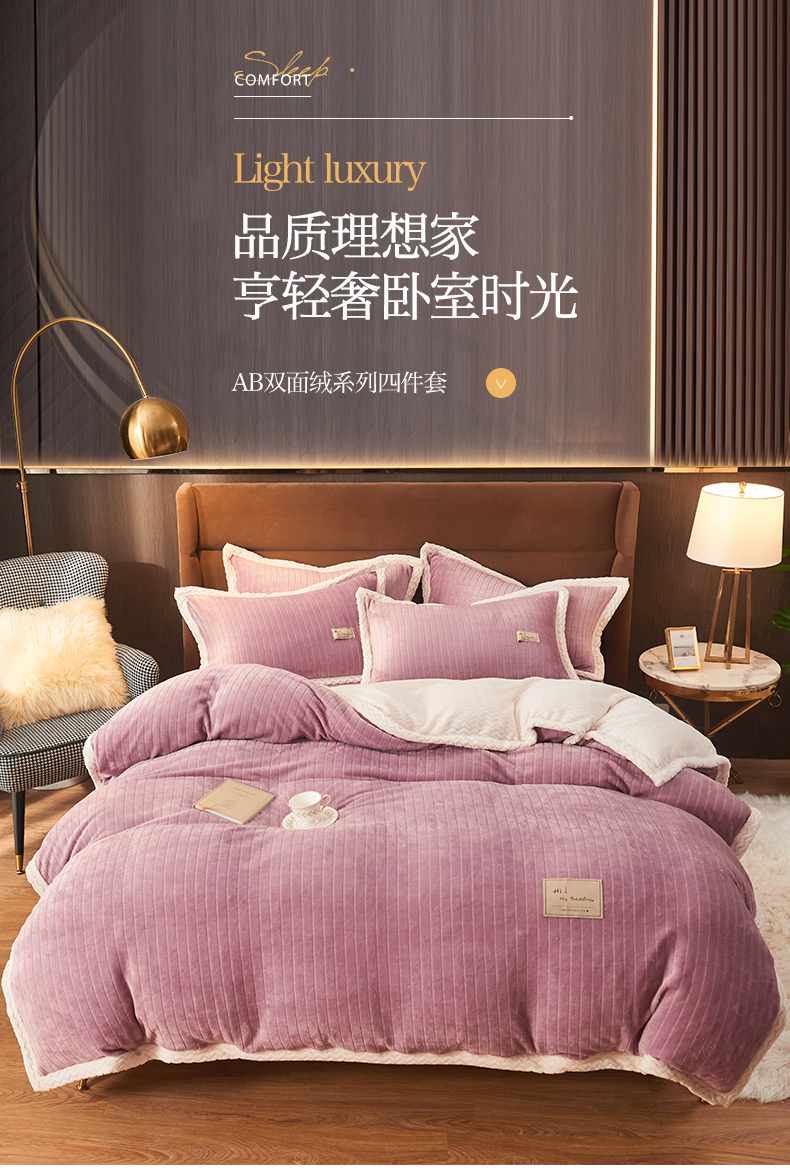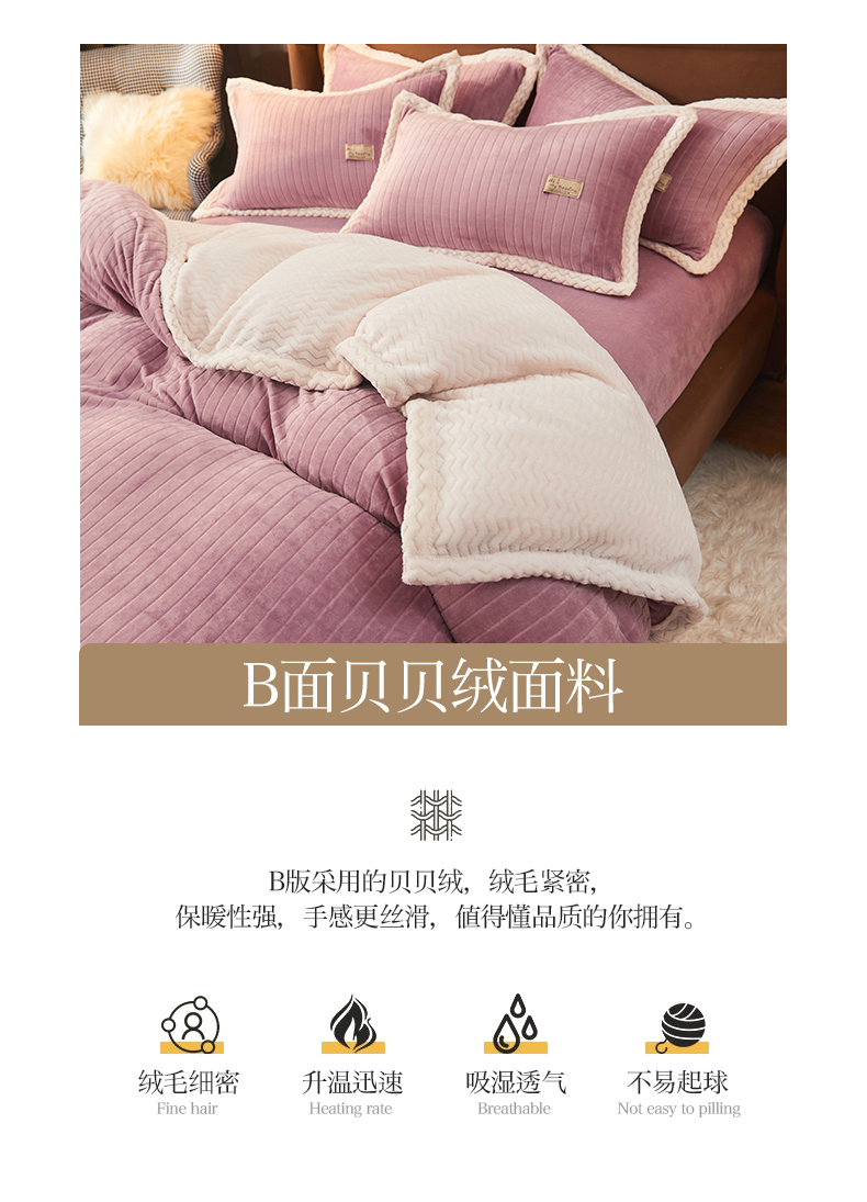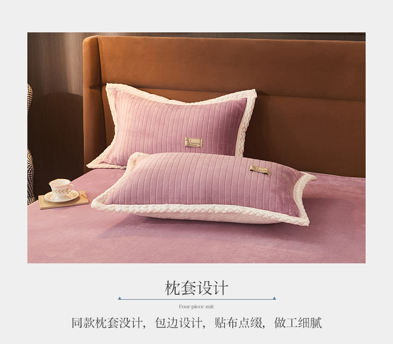 商品名称:全季家居2023新款纯色印花抗静电大包边牛奶绒贝贝绒四件套-纯色 胭脂紫