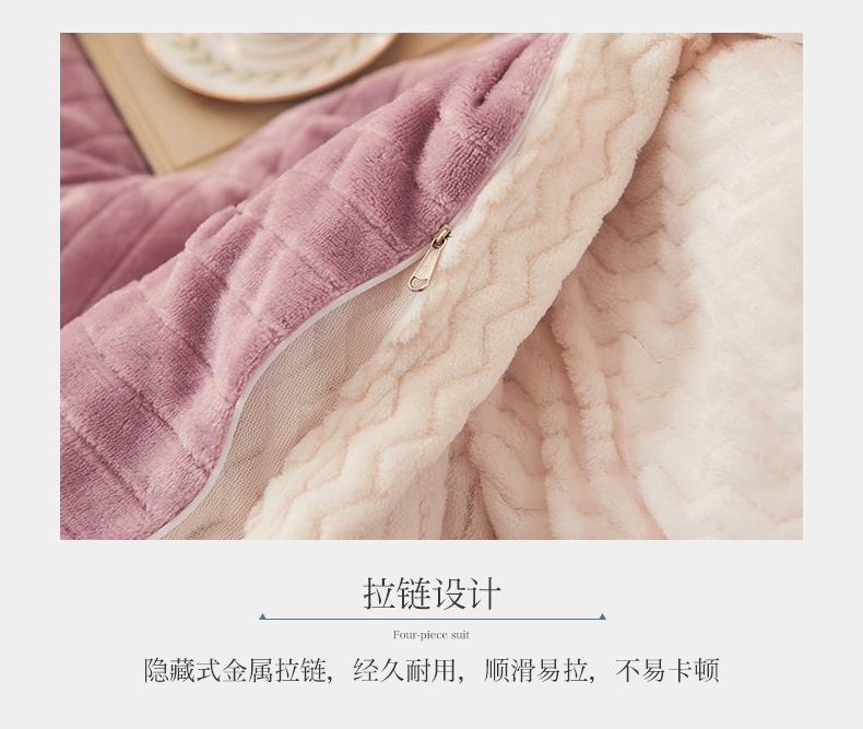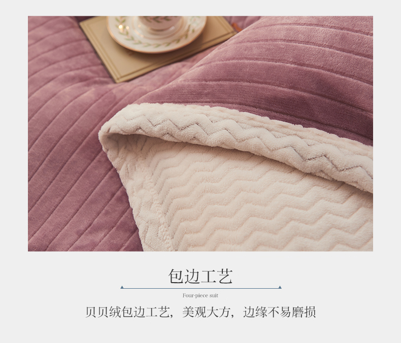 全季家居2023新款纯色印花抗静电大包边牛奶绒贝贝绒四件套-纯色 胭脂紫