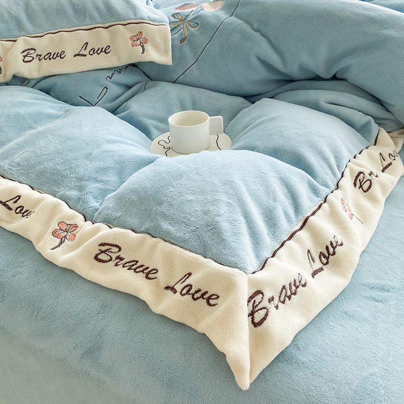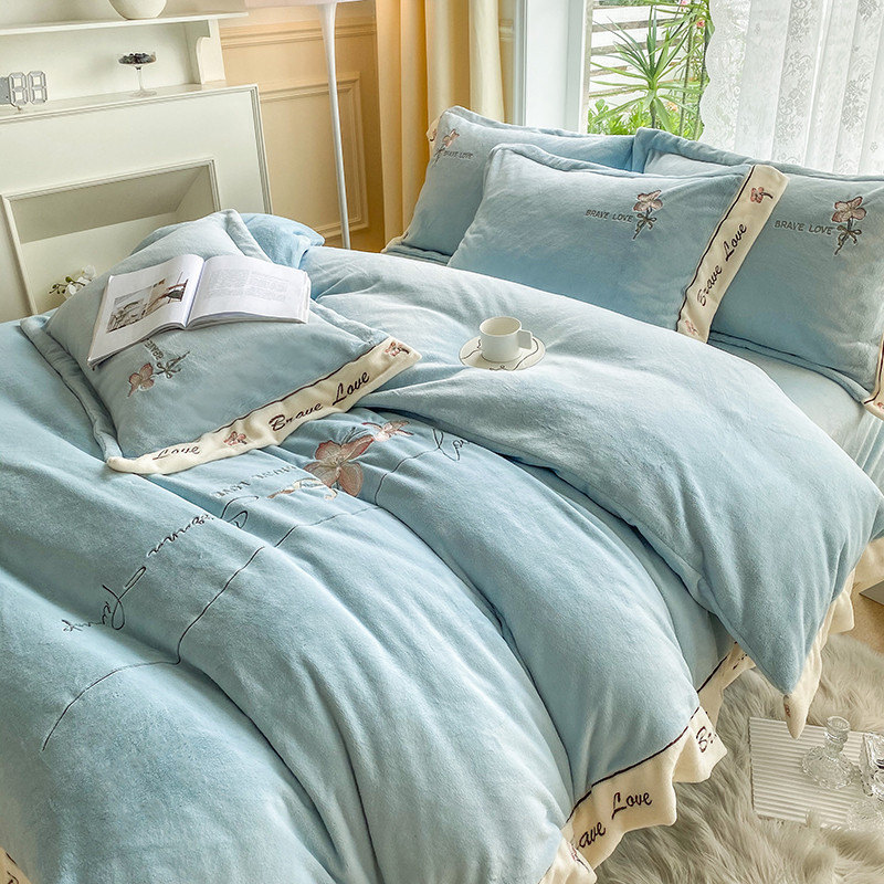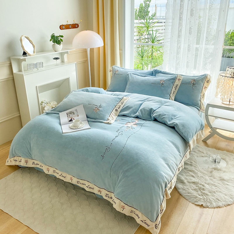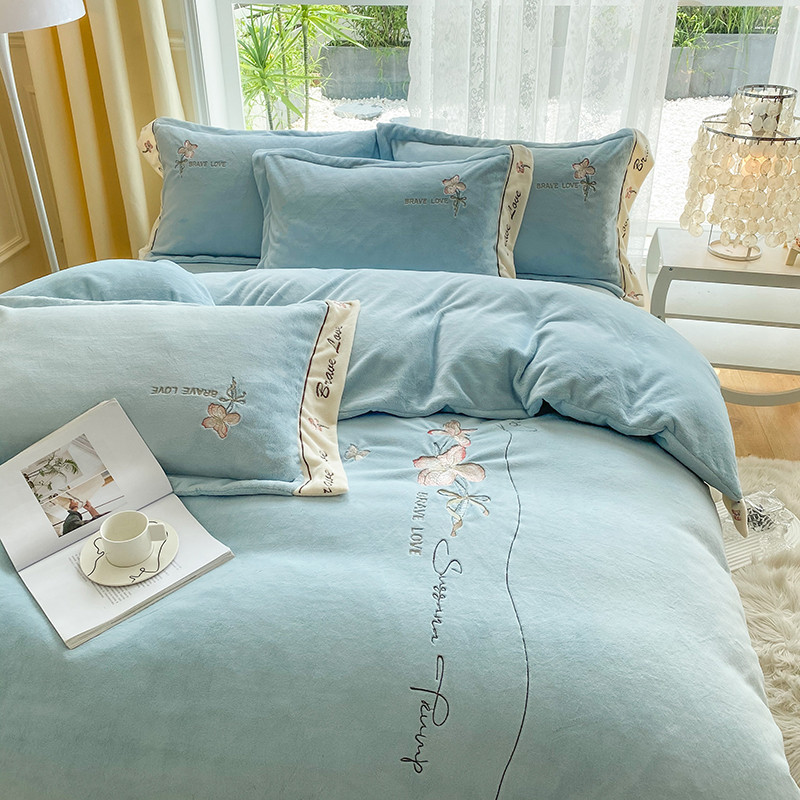 商品名称:可以家居 2023新款全消光云绒雅思绒牛奶绒刺绣四件套-漫妮 漫妮-天蓝