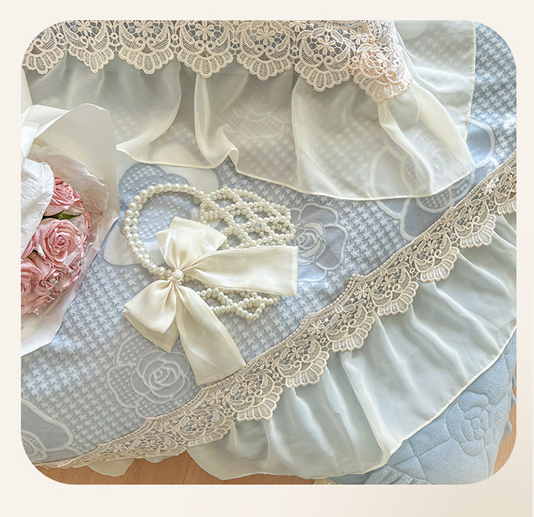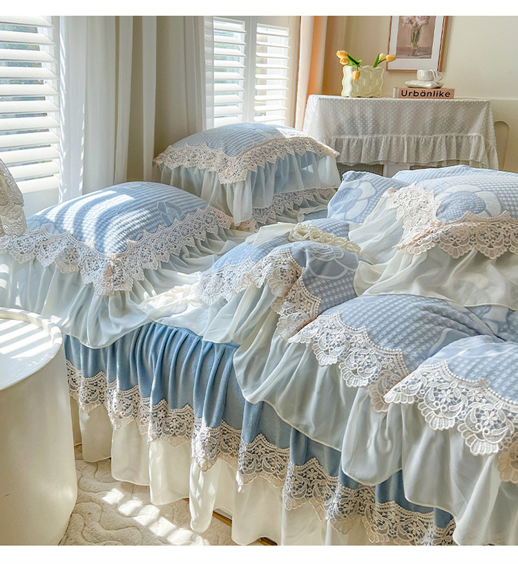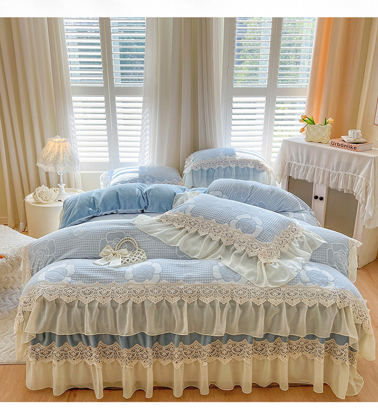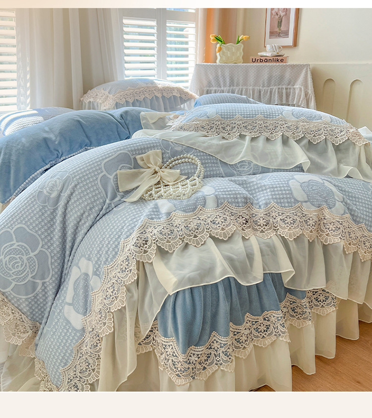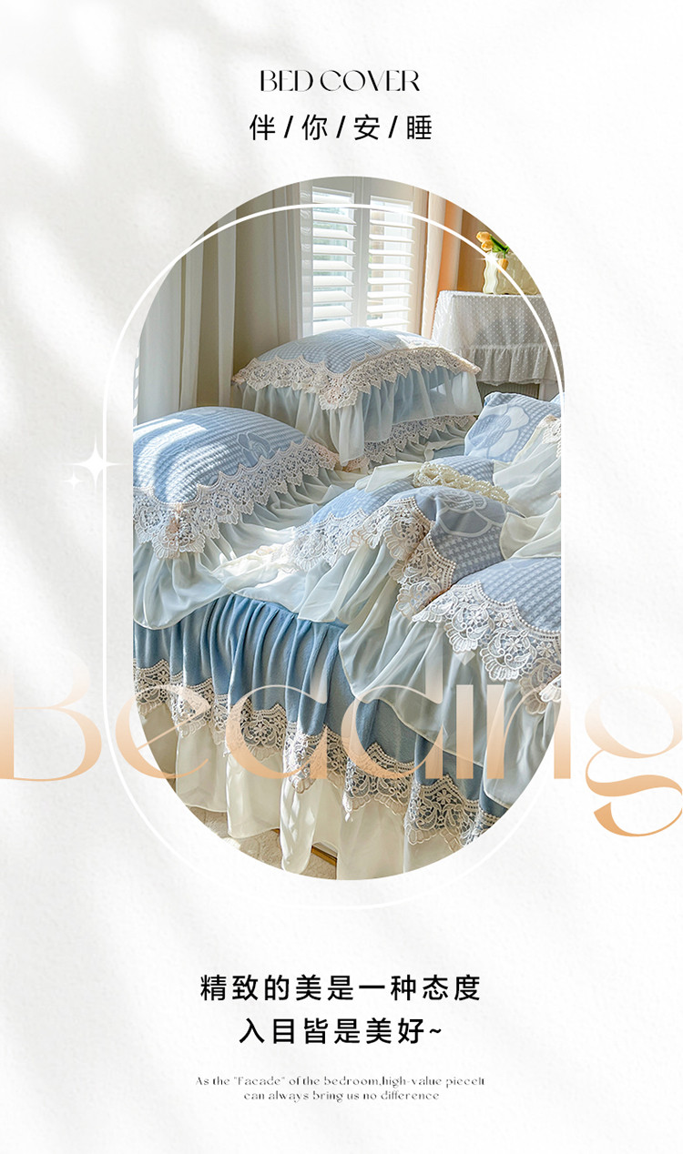 当前位置: 91家纺网 > 商品网购 > 床品套件 > 四件套 > 牛奶绒四件套 > 麒豆豆 2023新款高克重雕花牛奶绒四件套花边款花间浪漫天空蓝