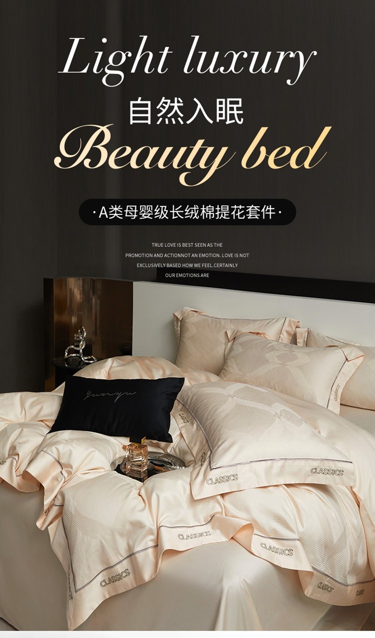 柔觉家纺 天丝刺绣贡缎提花全棉四件套,雅普诺-卡兰