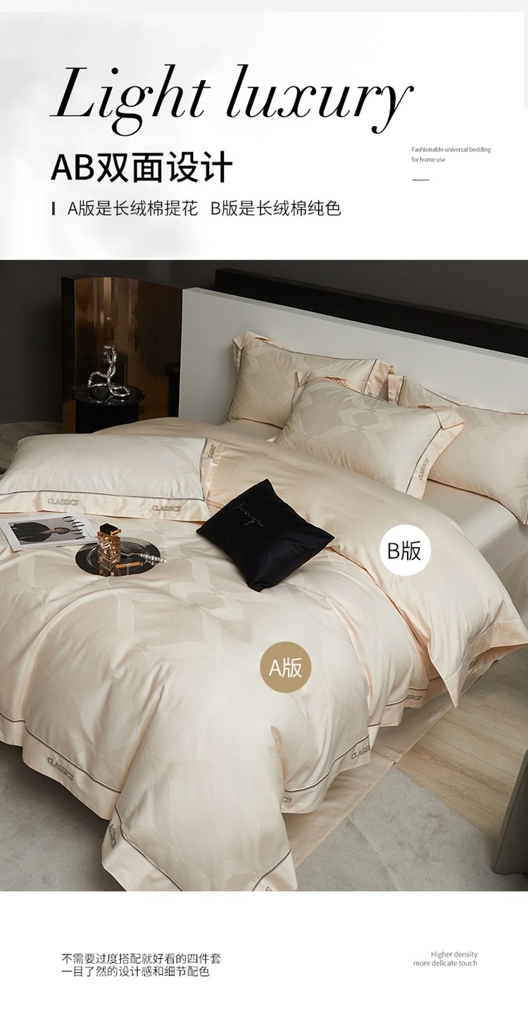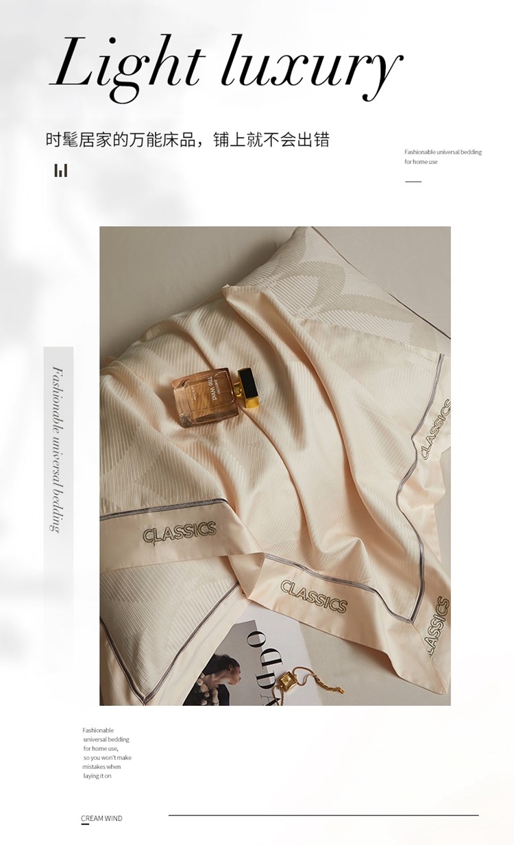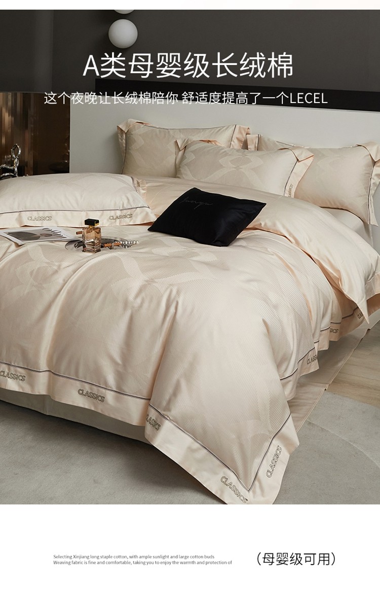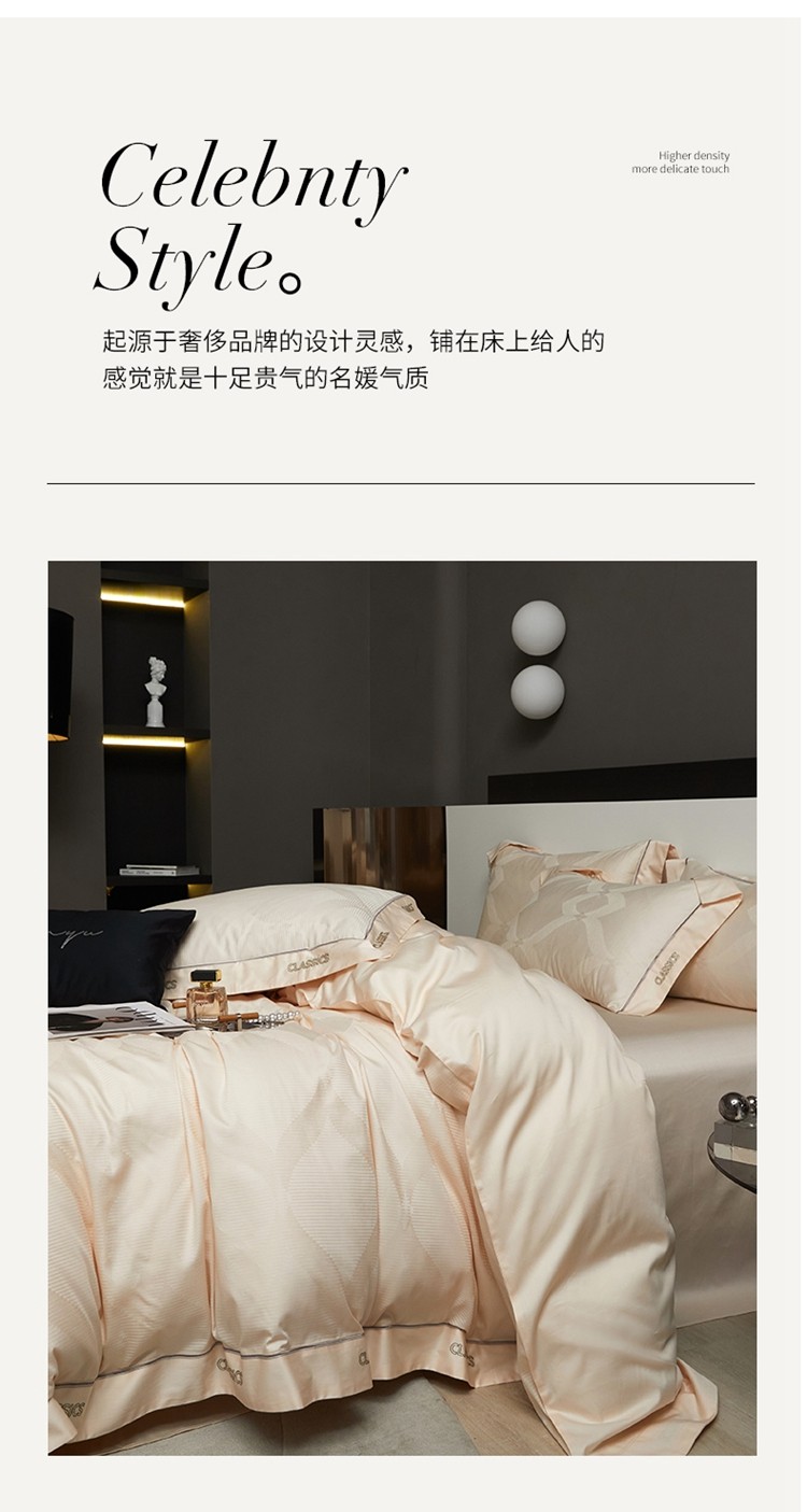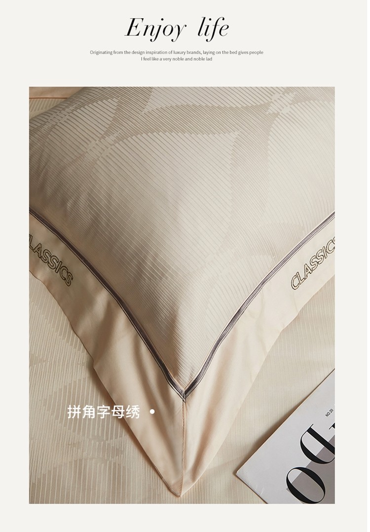 柔觉家纺 天丝刺绣贡缎提花全棉四件套,科西利亚-金色