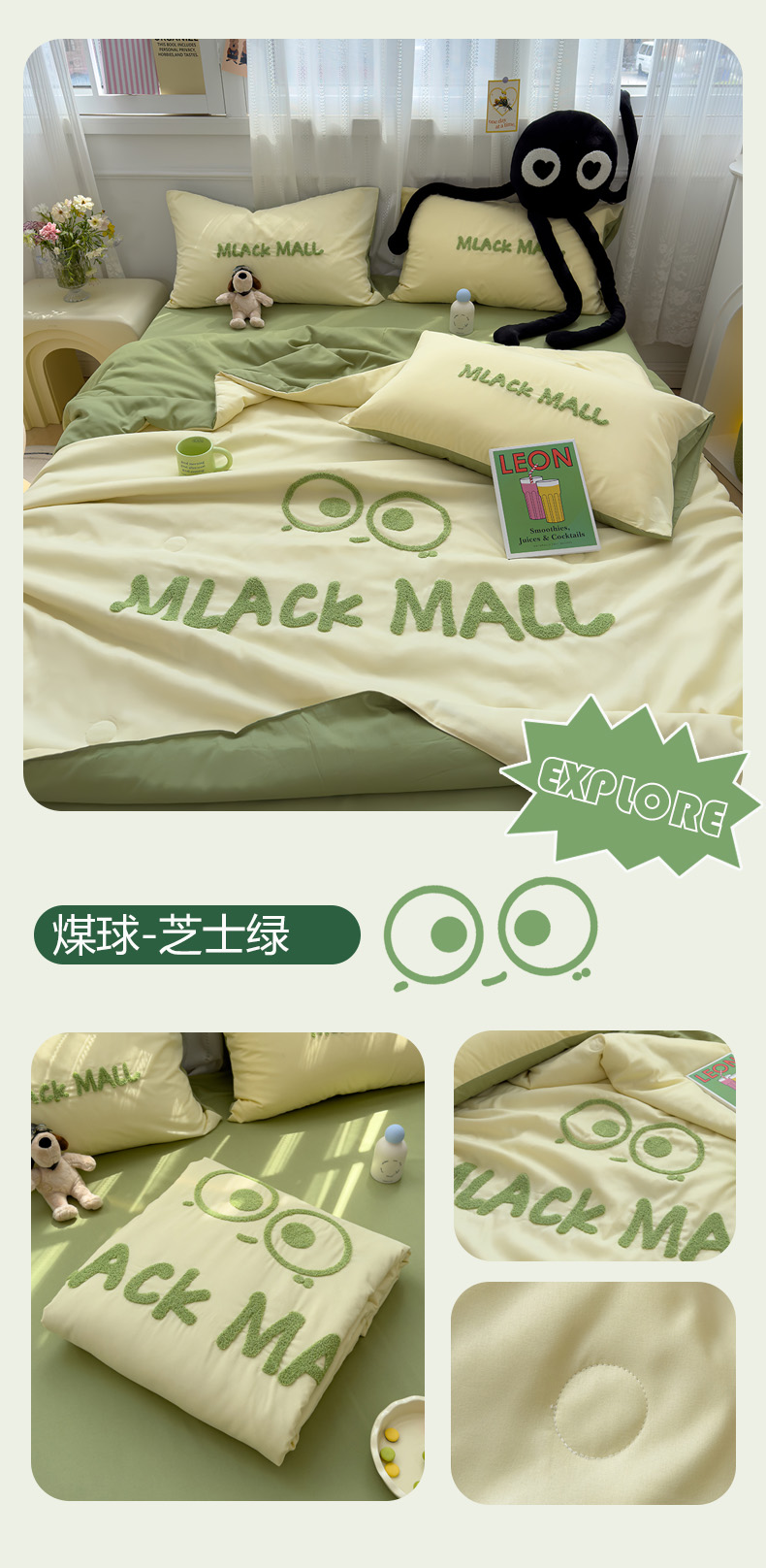 • 91家纺网 家纺一手货源 找家纺 (总)曼谷家纺 2025新款水洗棉超软毛巾绣夏被直播热款,煤球-芝士绿,煤球-小黑,飞行员-蓝芝士,咖啡时光-奶咖,三小怪-波点紫