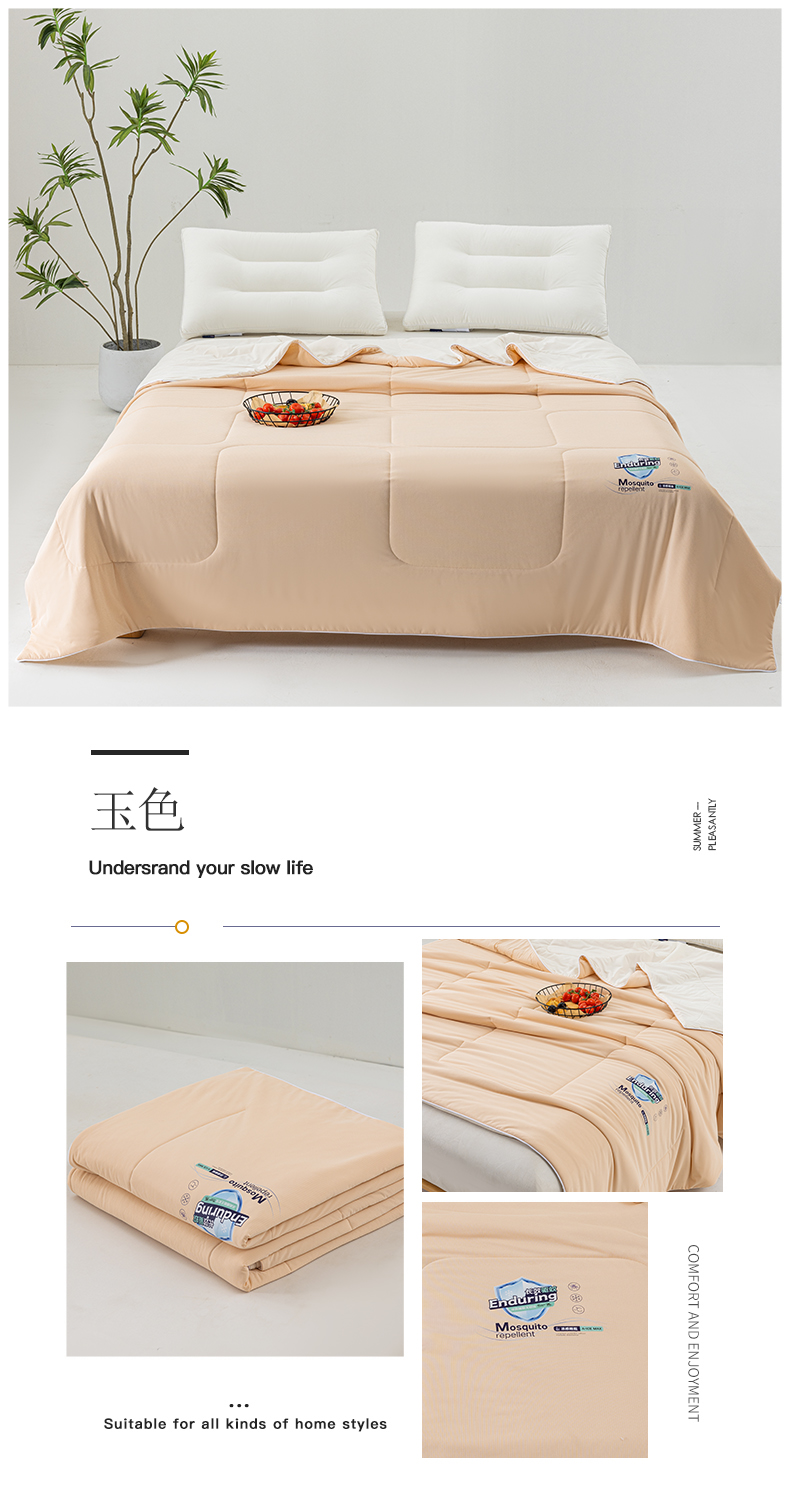 商品名称:金帛坊 2024新款A类氨纶凉感天丝夏被纯色冰淇淋西瓜夏凉被纯色拼色 玉色