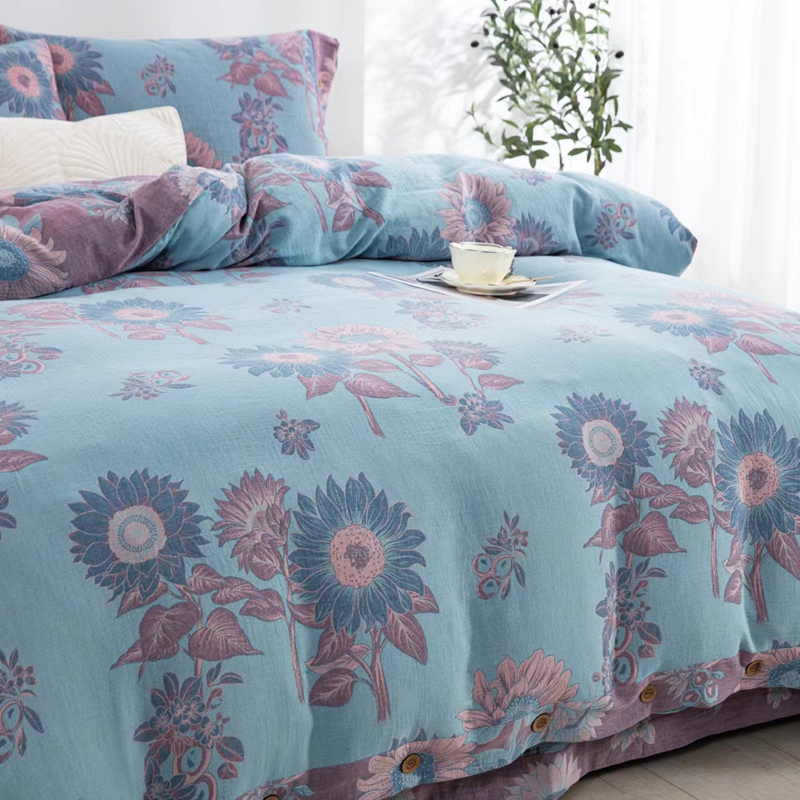 双层纱家居 2024新款大花系列四件套 一举夺魁-浅蓝