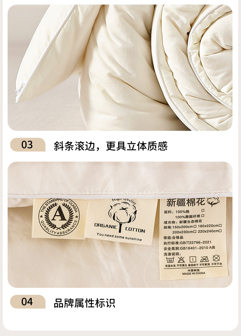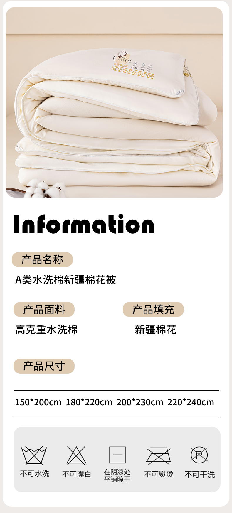 • 91家纺网 家纺一手货源 找家纺 莱轩席业 2024新款水洗棉新疆棉花被子冬被被芯拉链款四季通用直播爆款【含买家秀】 单被子-米白色