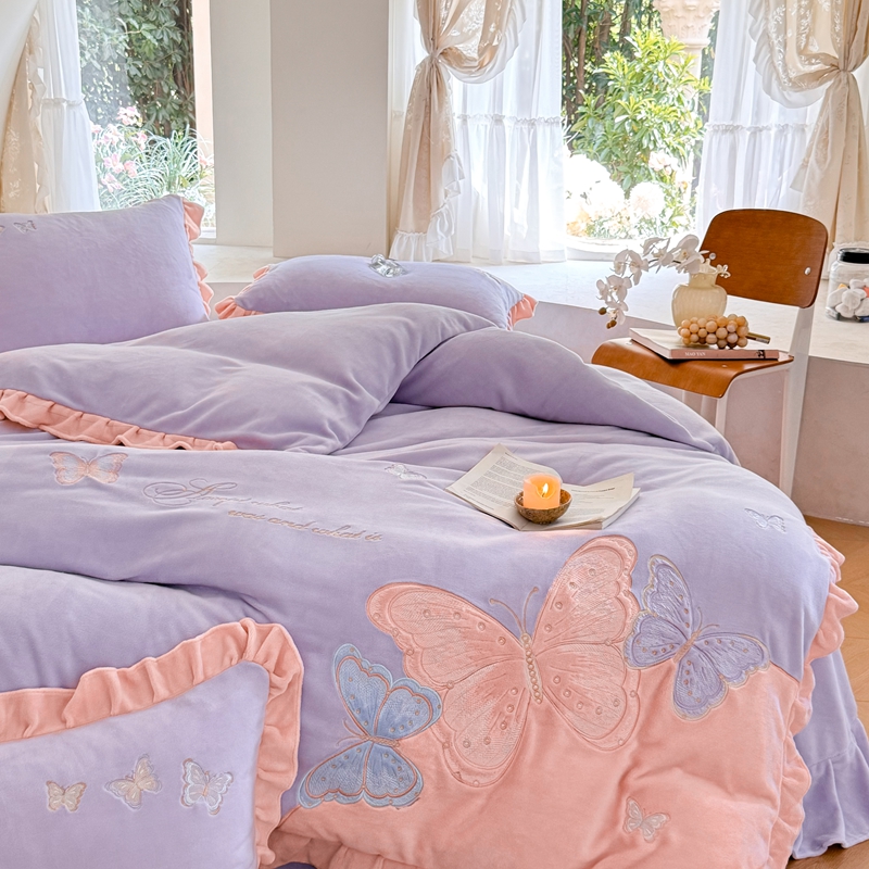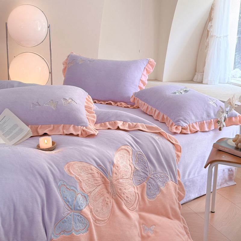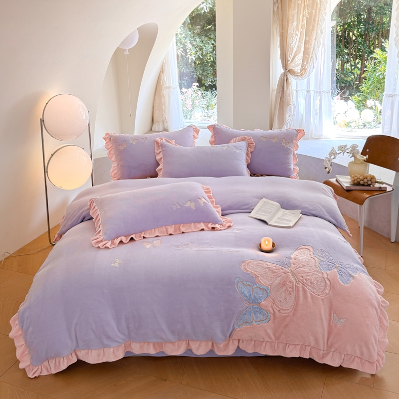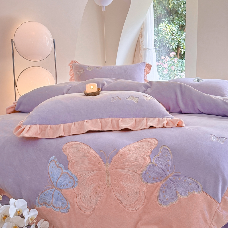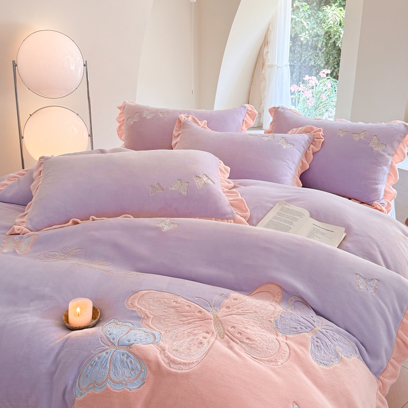 商品名称:可以家居 2024新款全消光牛奶绒云绒法兰绒四件套-薇薇安 优雅紫