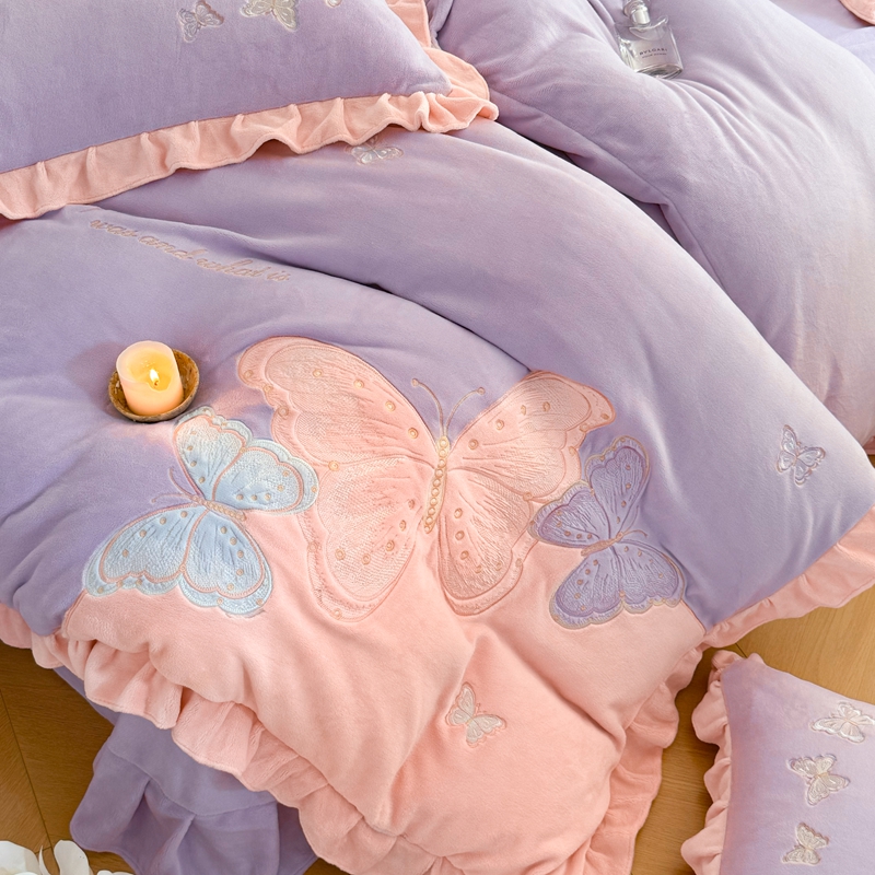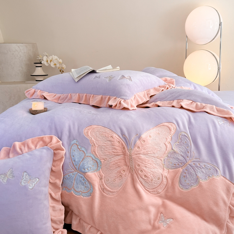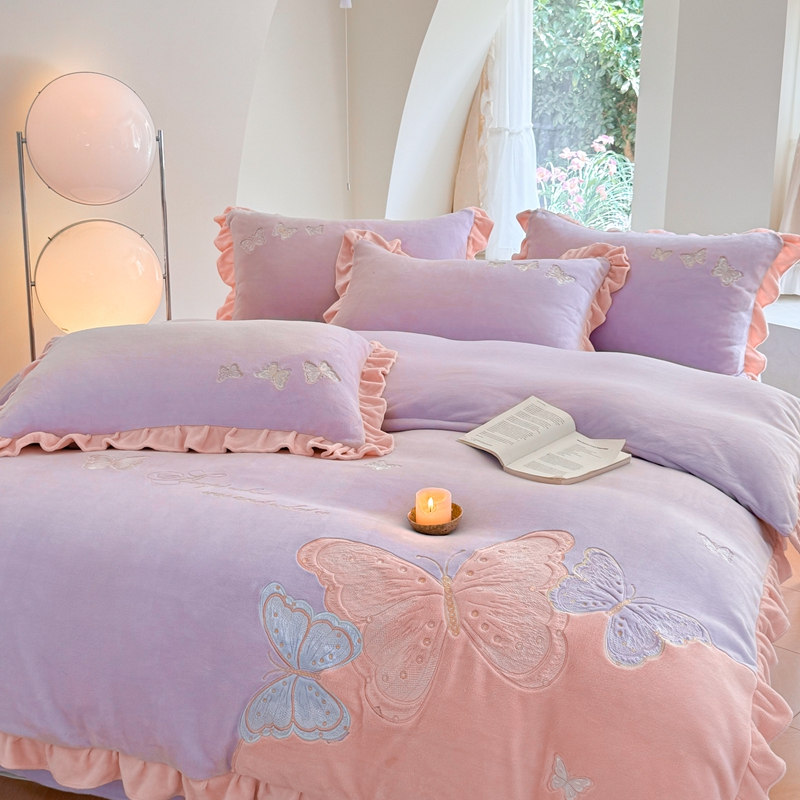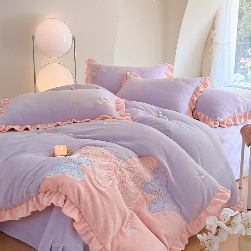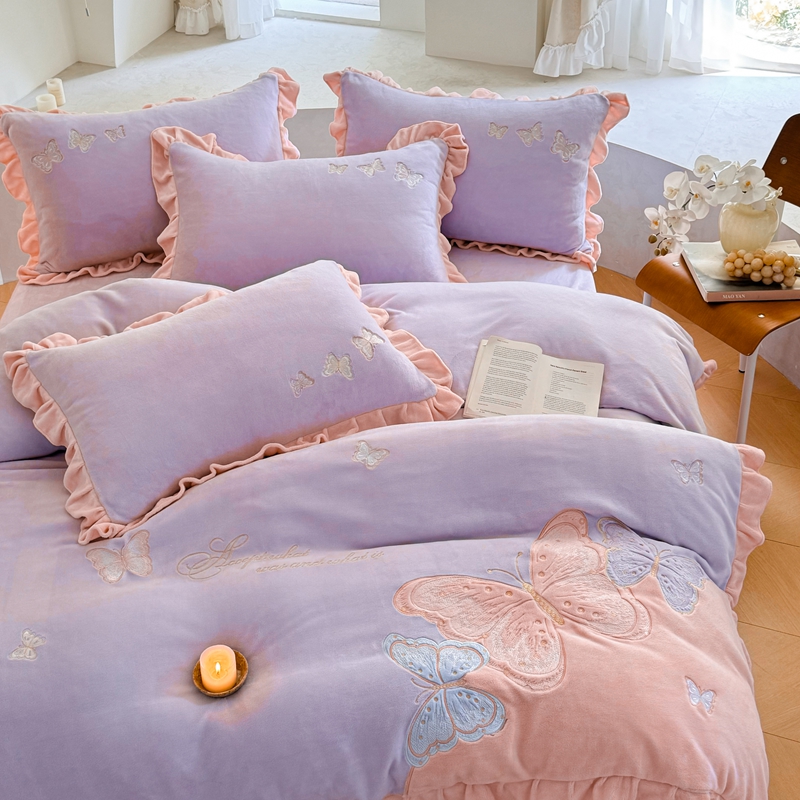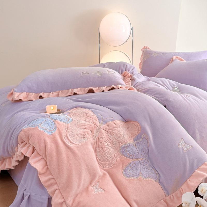 商品名称:可以家居 2024新款全消光牛奶绒云绒法兰绒四件套-薇薇安 优雅紫
