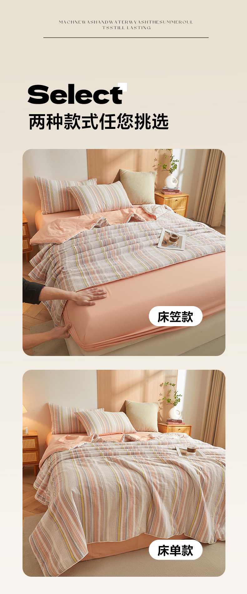 (总)金喜 2024新款100支全棉床盖蚕丝床盖三件套D型绗缝系列,白桃粉,繁花橙,粉雅灰,迷雾金,木槿绿
