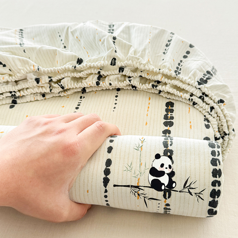 沐辰 2025春夏新款A类全棉纯棉老粗布烫画单品床笠 床笠单件 熊猫竹子-黑