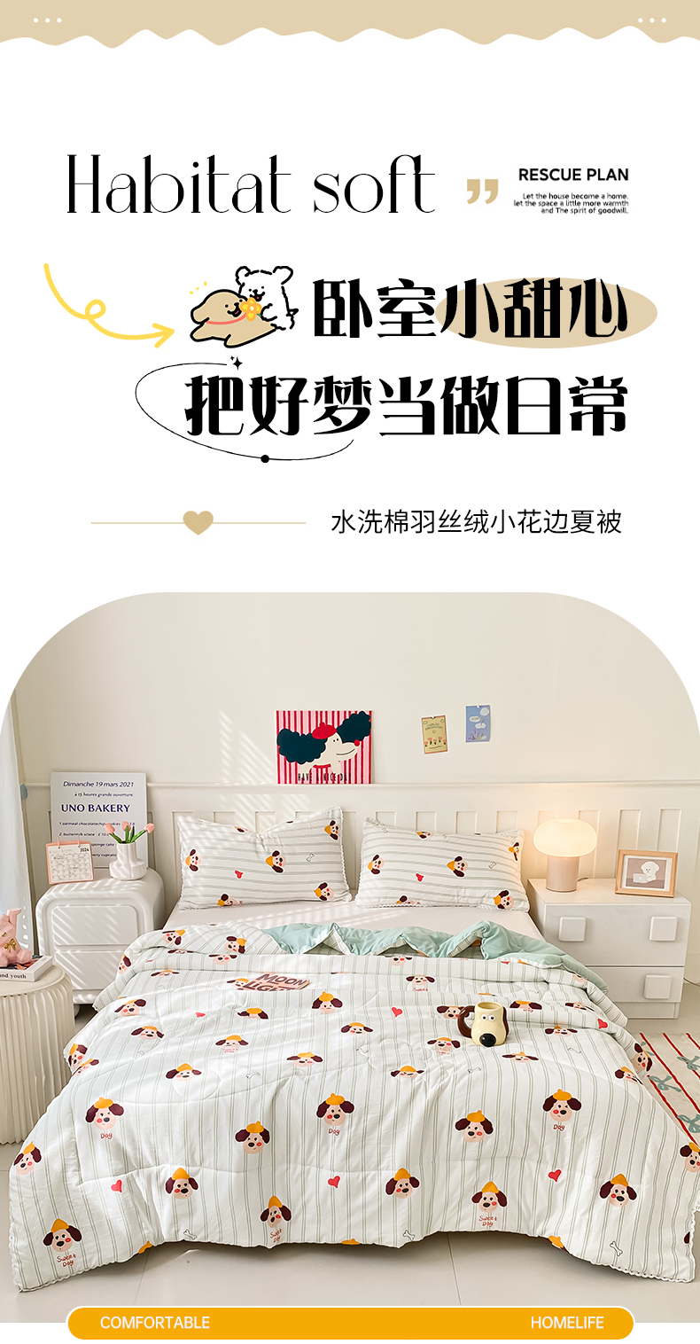 商品名称:(总)佰亿莱 2025春夏新款水洗棉羽丝绒小花边夏被夏凉被空调被
