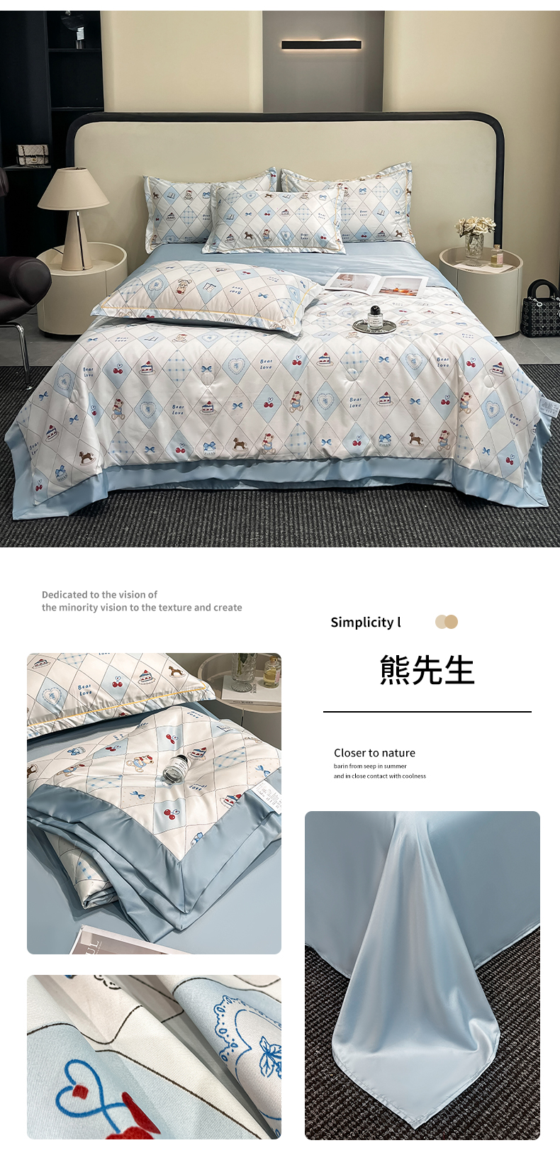佳品居 2025新款直播水洗天丝夏被冰丝夏凉被空调被四件套 熊先生