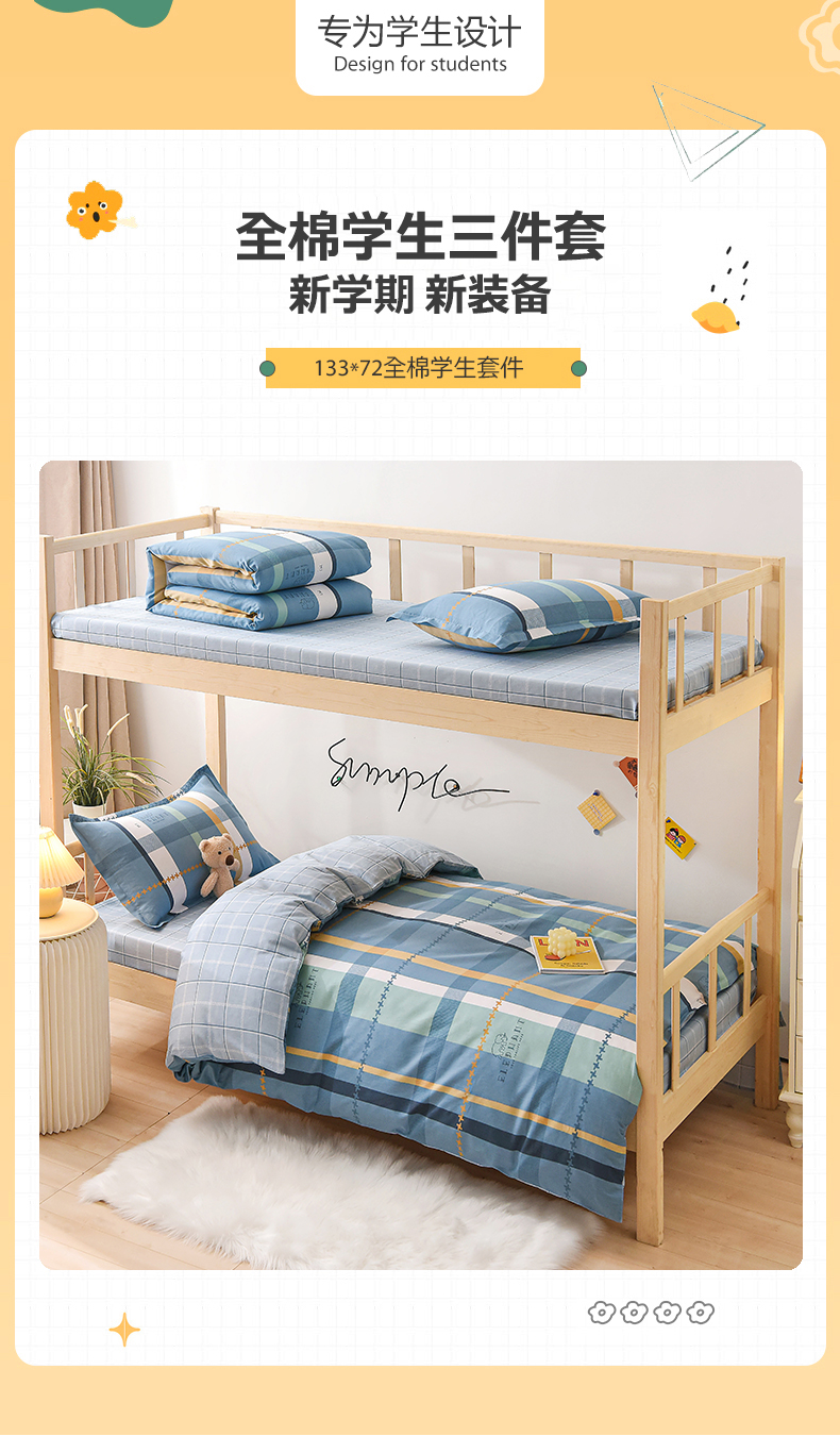 当前位置: 91家纺网 > 商品网购 > 床品套件 > 三件套 > 鑫宇 2025全棉13372床单款印花学生三件套 安迪丝-蓝