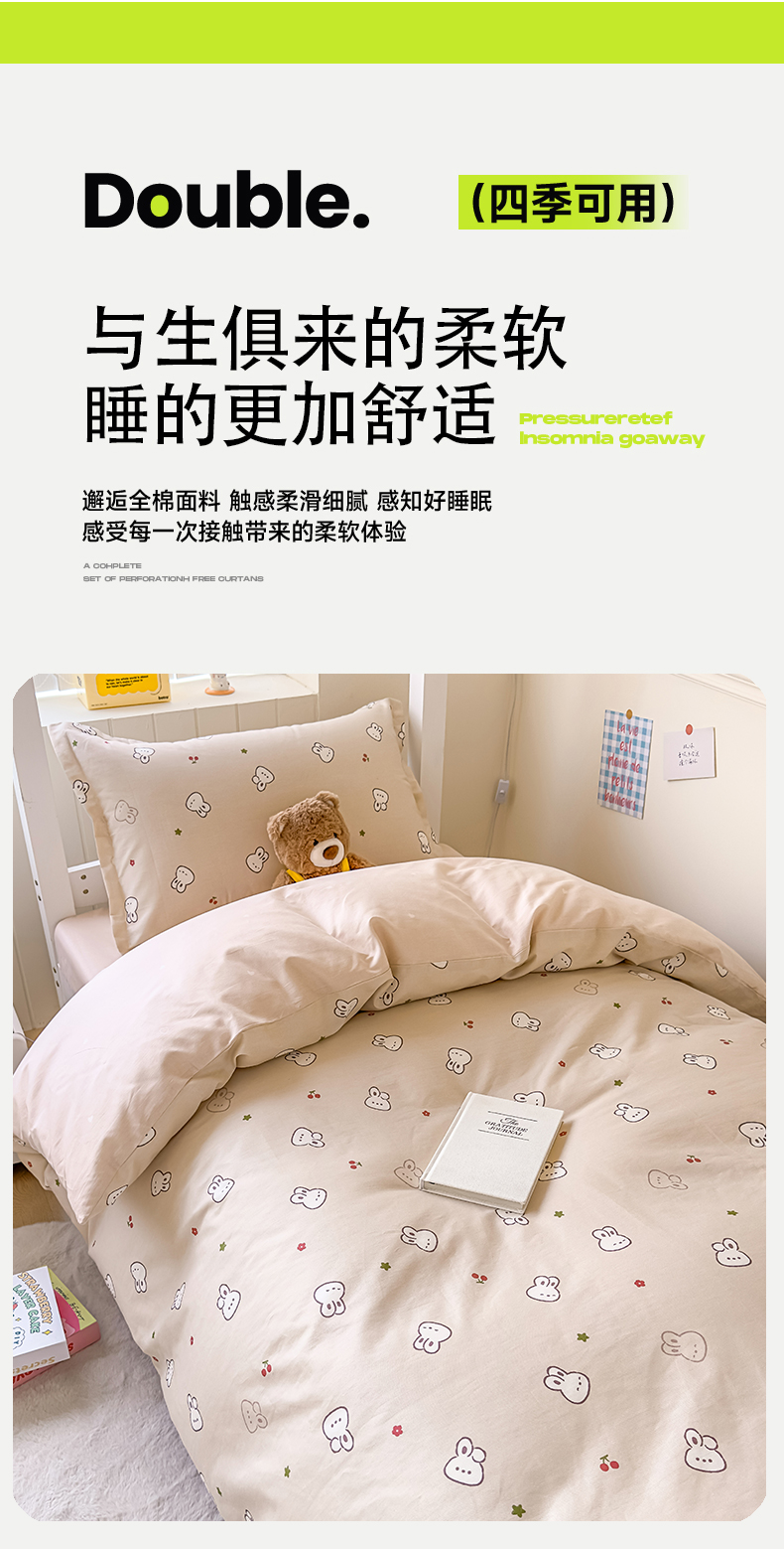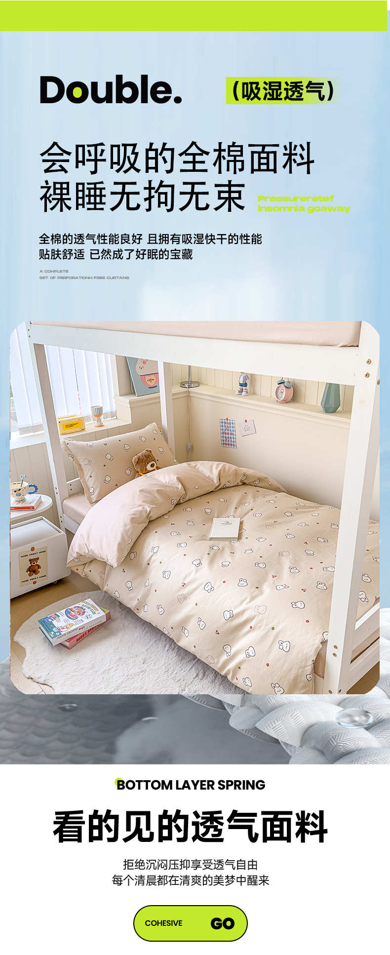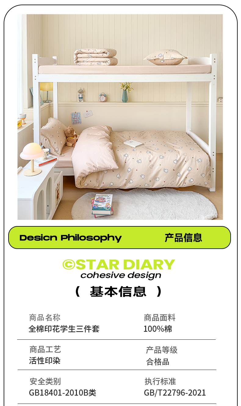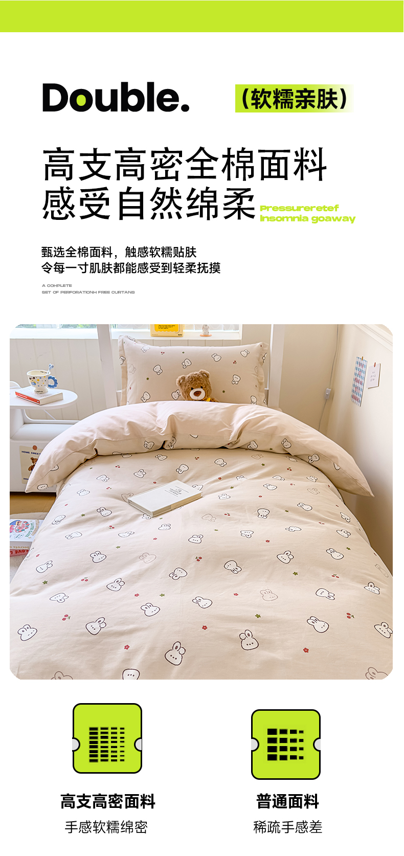 当前位置: 91家纺网 > 商品网购 > 床品套件 > 三件套 > 鑫宇 2025新款全棉纯棉13372宽幅学生上下铺三件套 米菲