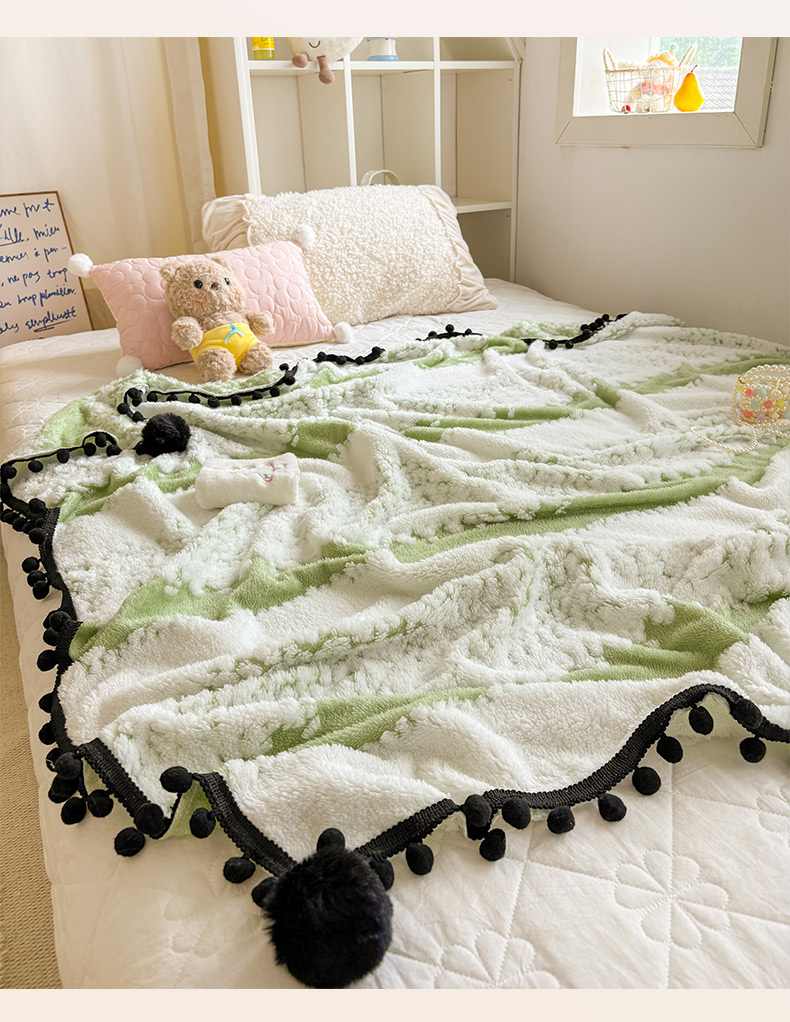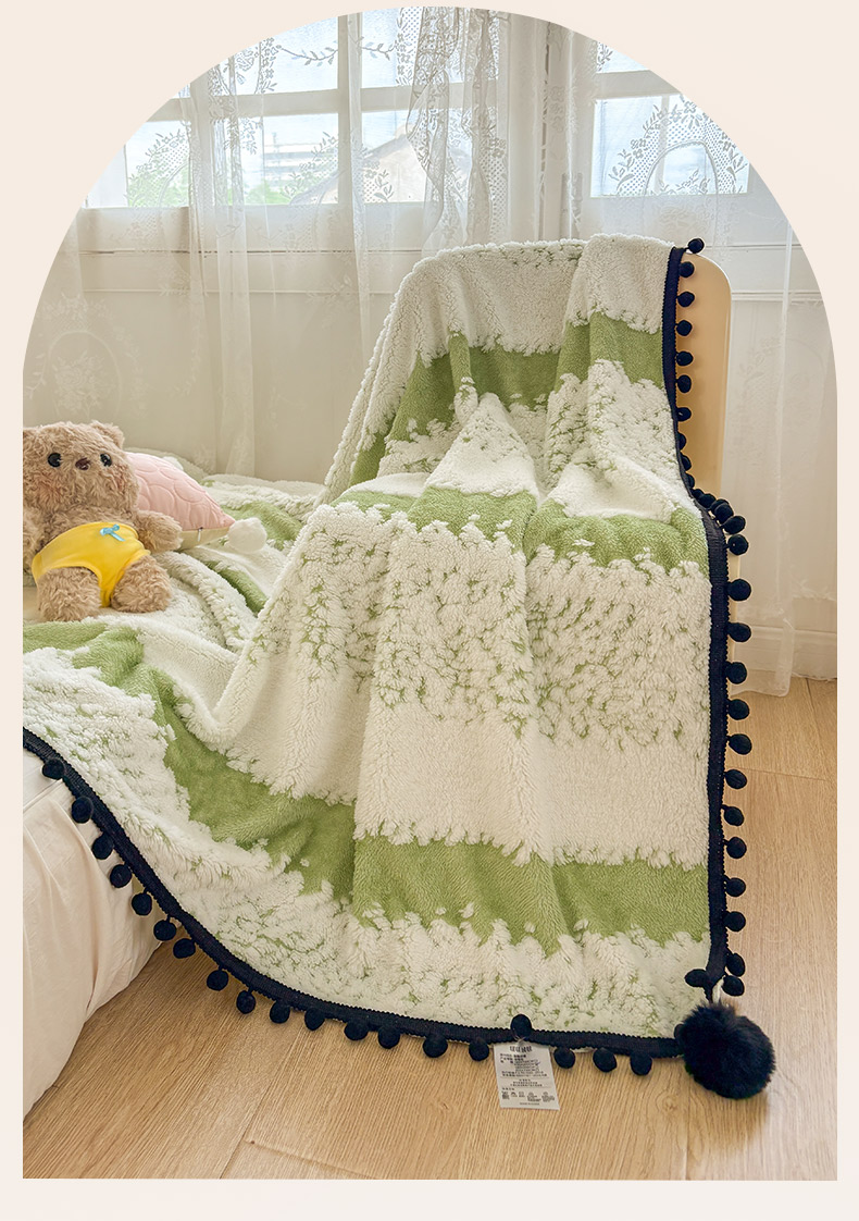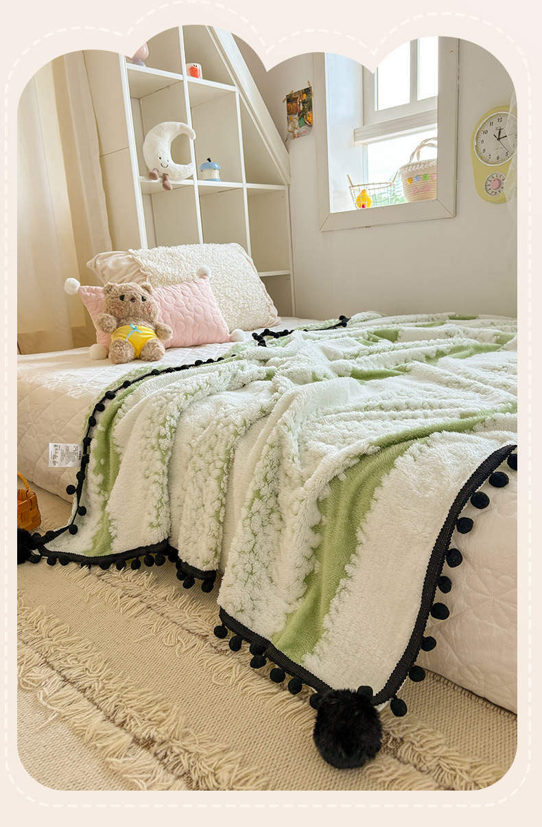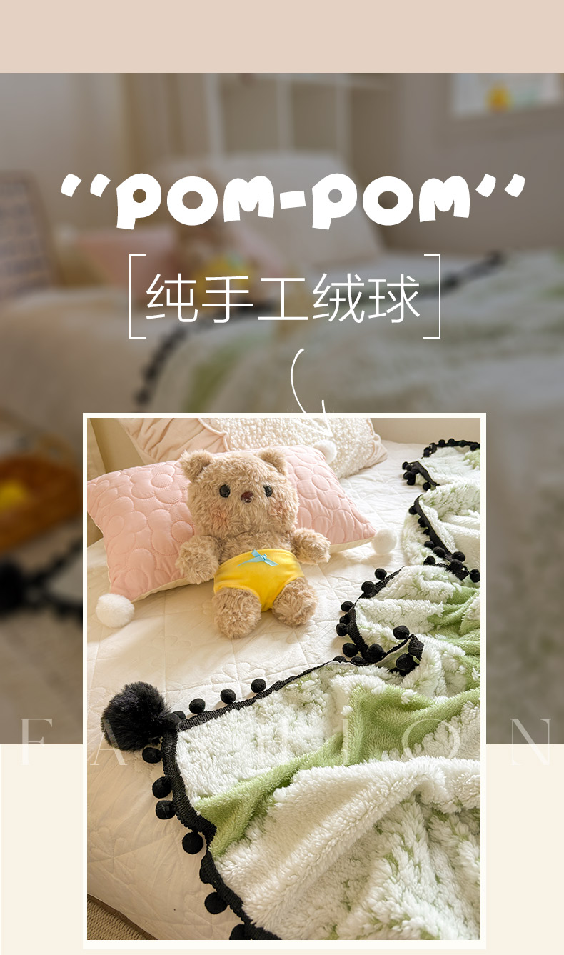 (总)潮邦创意家居 2025新款 奶芙绒流苏球毛毯,薄荷绿,焦糖咖,绵云白,浅蓝灰,深暮灰,甜莓粉