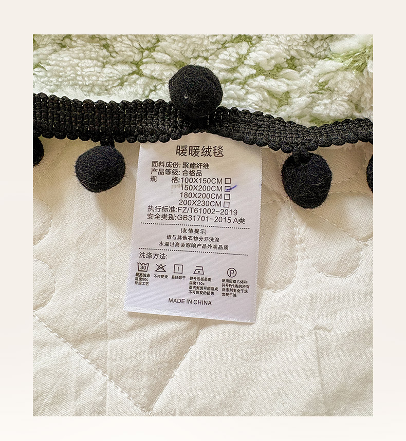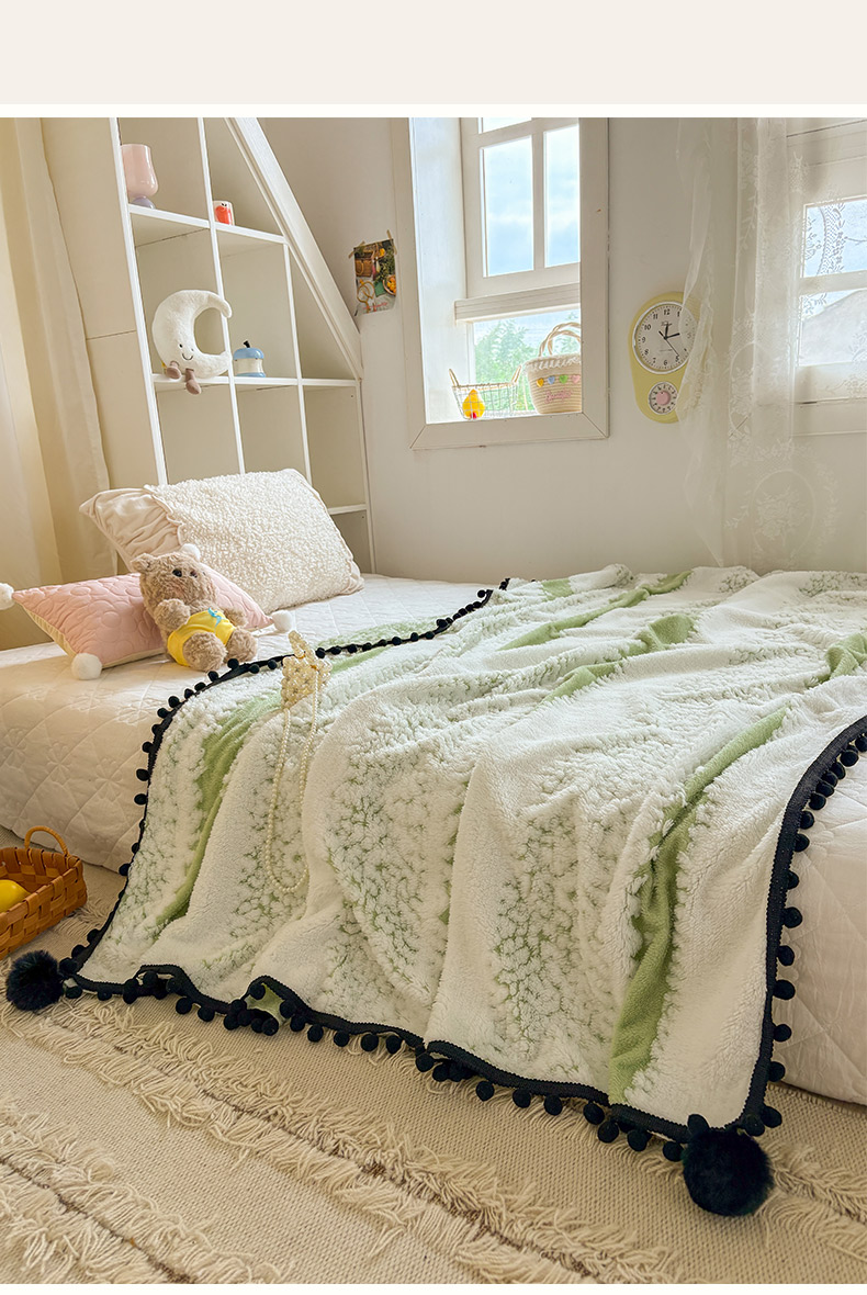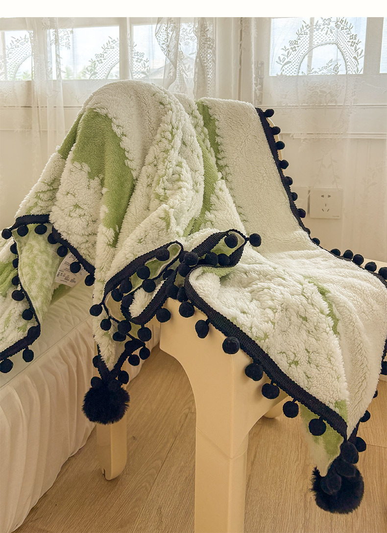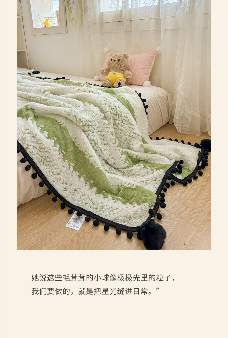 商品名称:潮邦创意家居 2025新款250g阳离子提花小球毯盖毯毯子-星绒墨趣 星绒墨趣 -香草绿