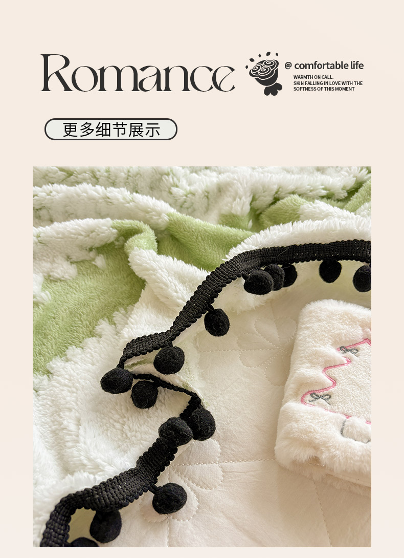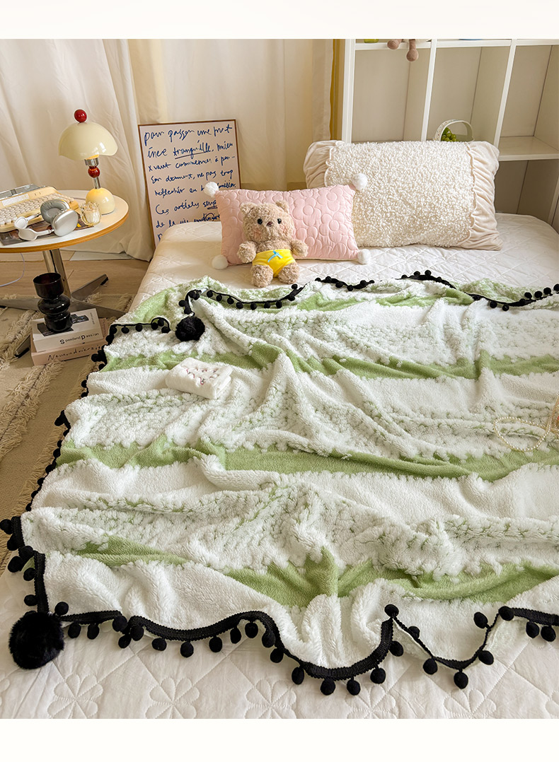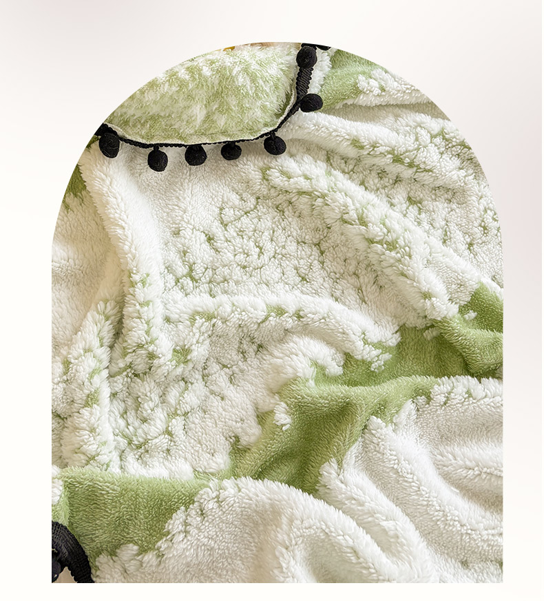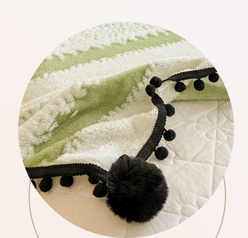 潮邦创意家居 2025新款250g阳离子提花小球毯盖毯毯子-星绒墨趣 星绒墨趣 -香草绿