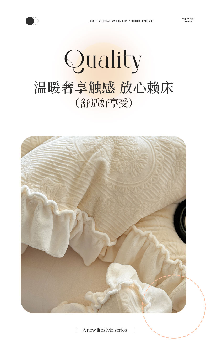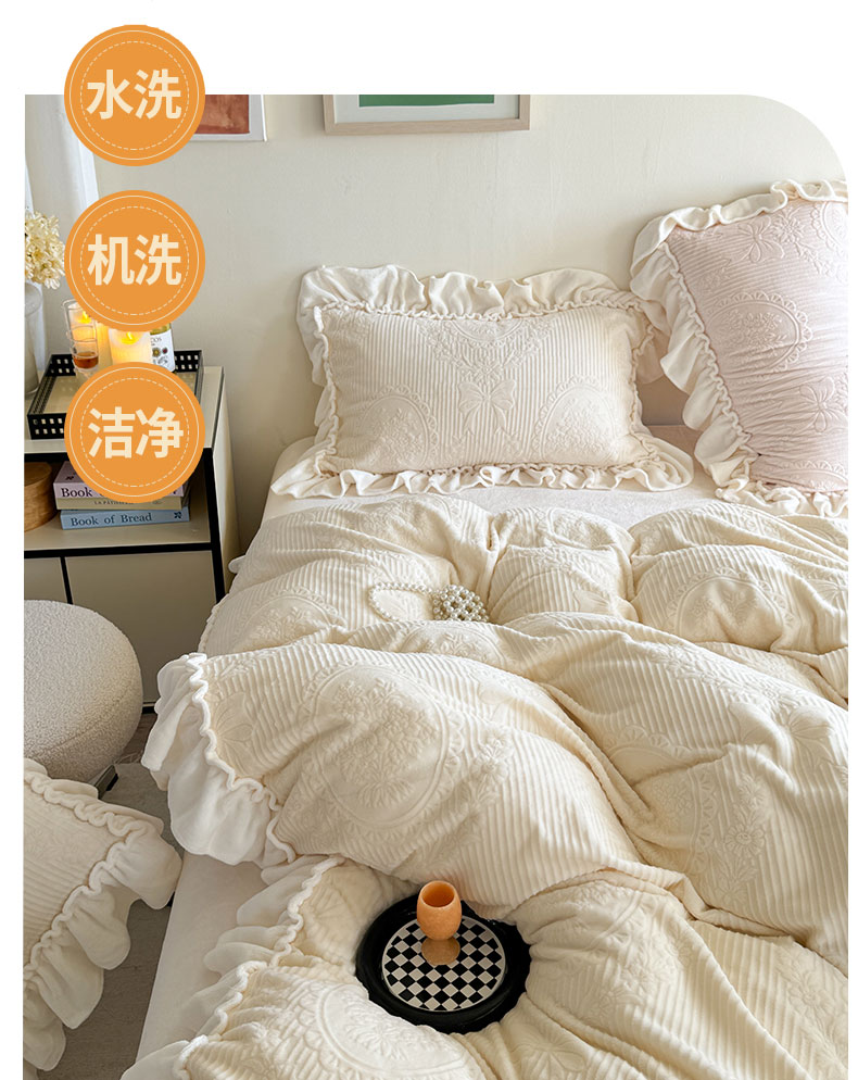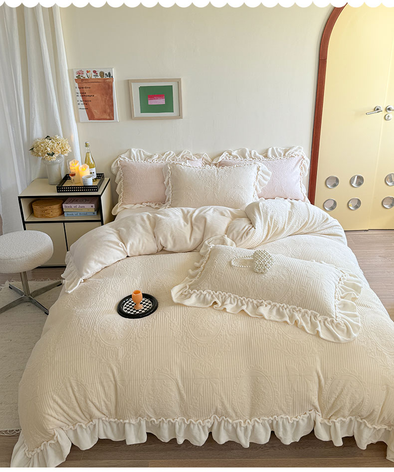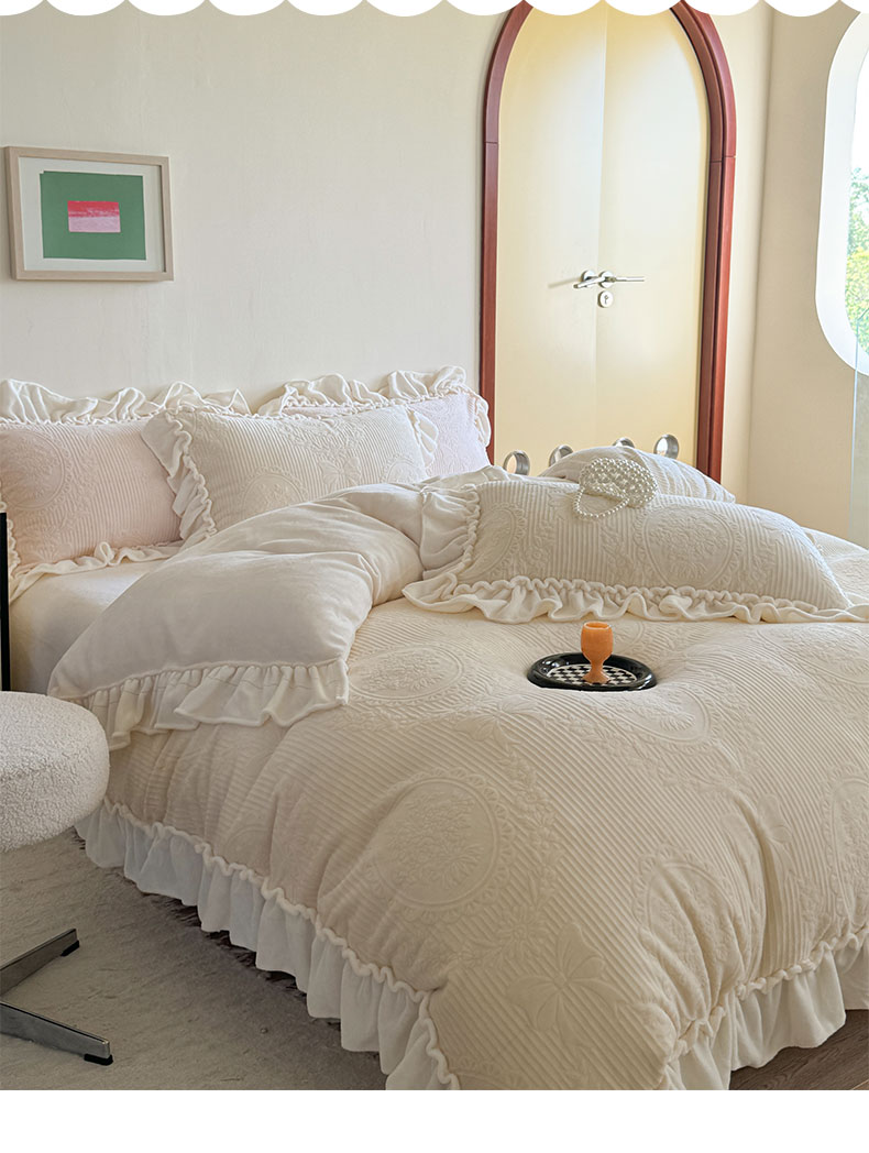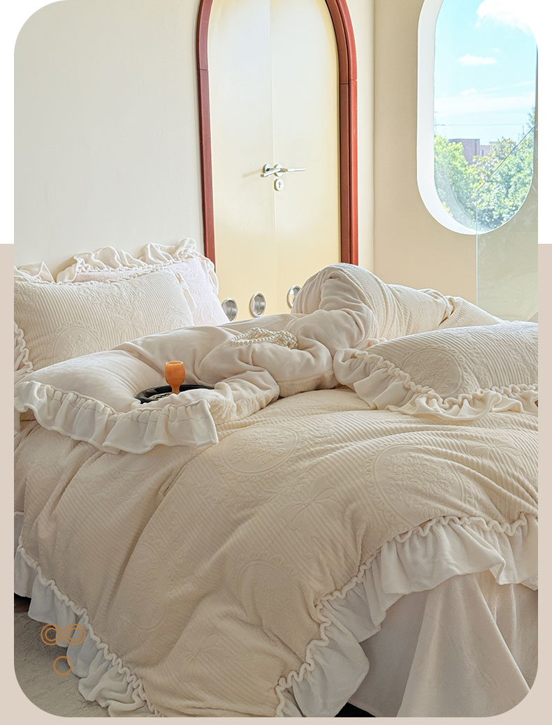 当前位置: 91家纺网 > 商品网购 > 床品套件 > 四件套 > 牛奶绒四件套 > 六巷胡同 2025新款轻法式公主蝴蝶结提花牛奶绒四件套-风格二 公主蝴蝶结-白