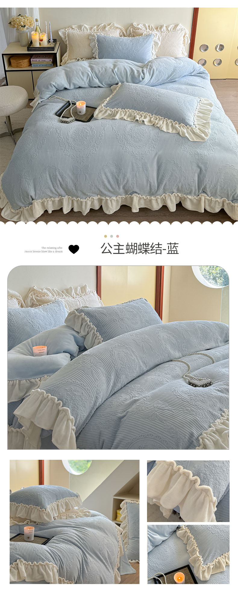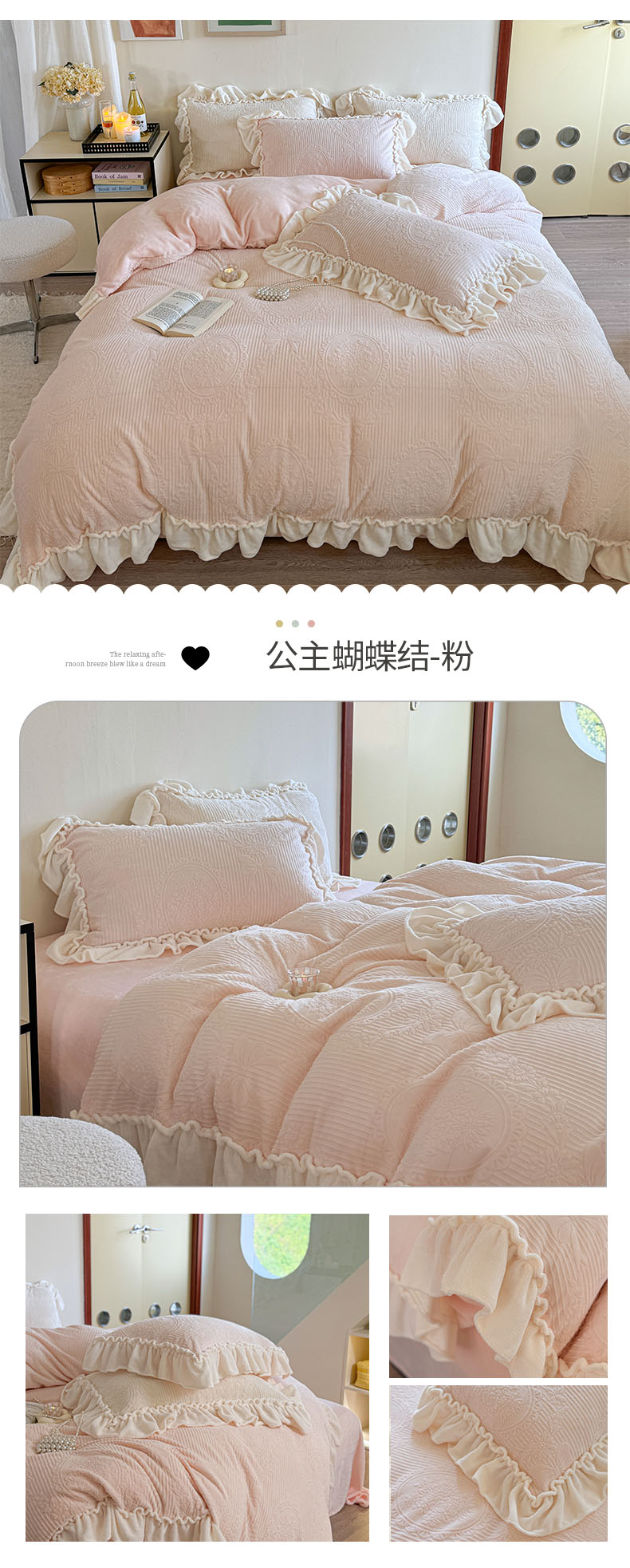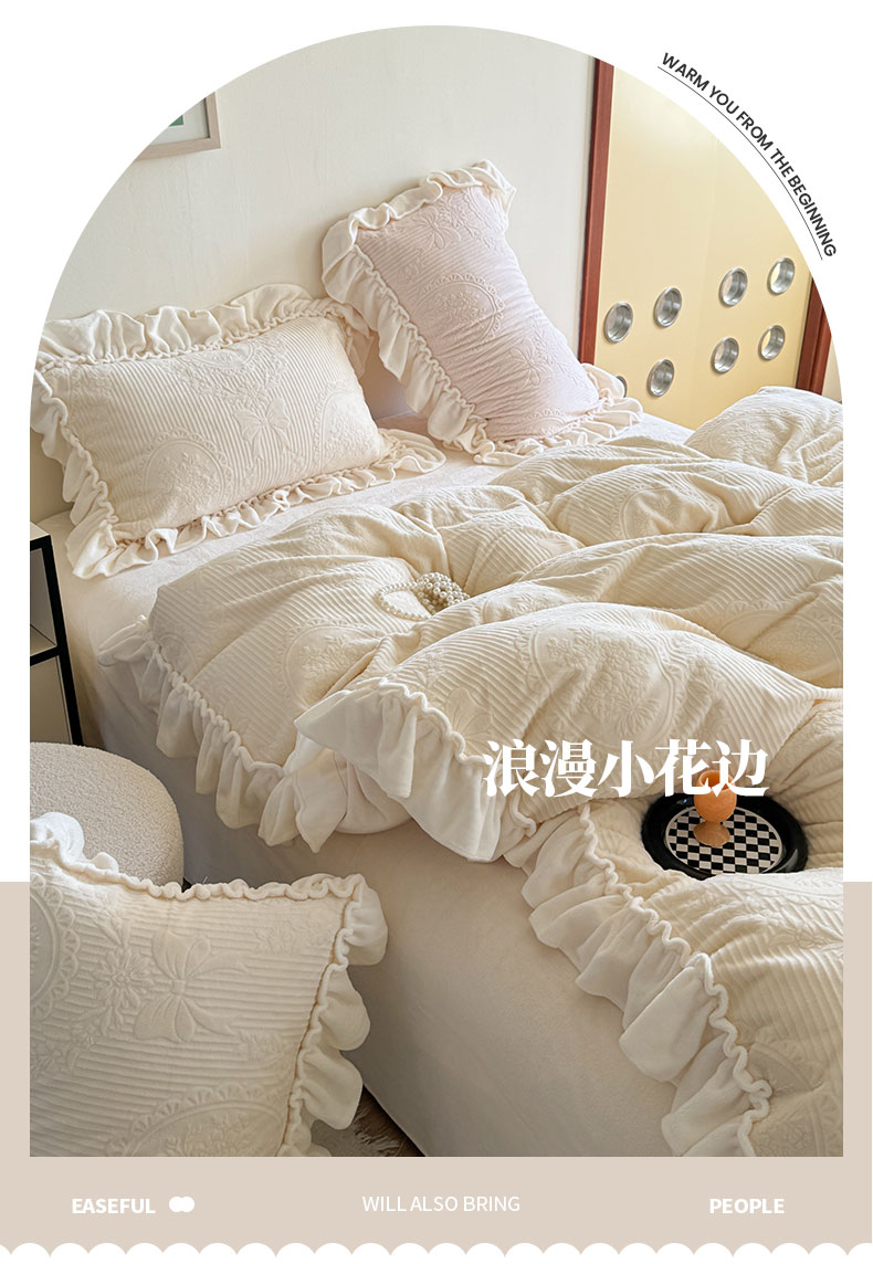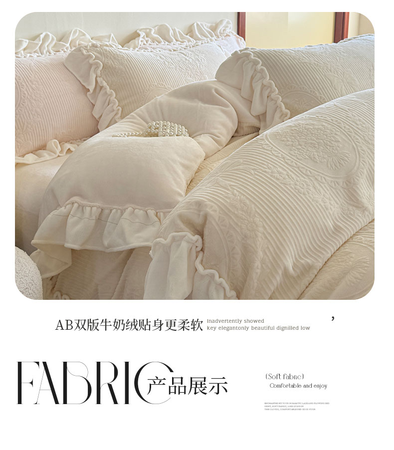 当前位置: 91家纺网 > 商品网购 > 床品套件 > 四件套 > 牛奶绒四件套 > 六巷胡同 2025新款轻法式公主蝴蝶结提花牛奶绒四件套-风格二 公主蝴蝶结-白