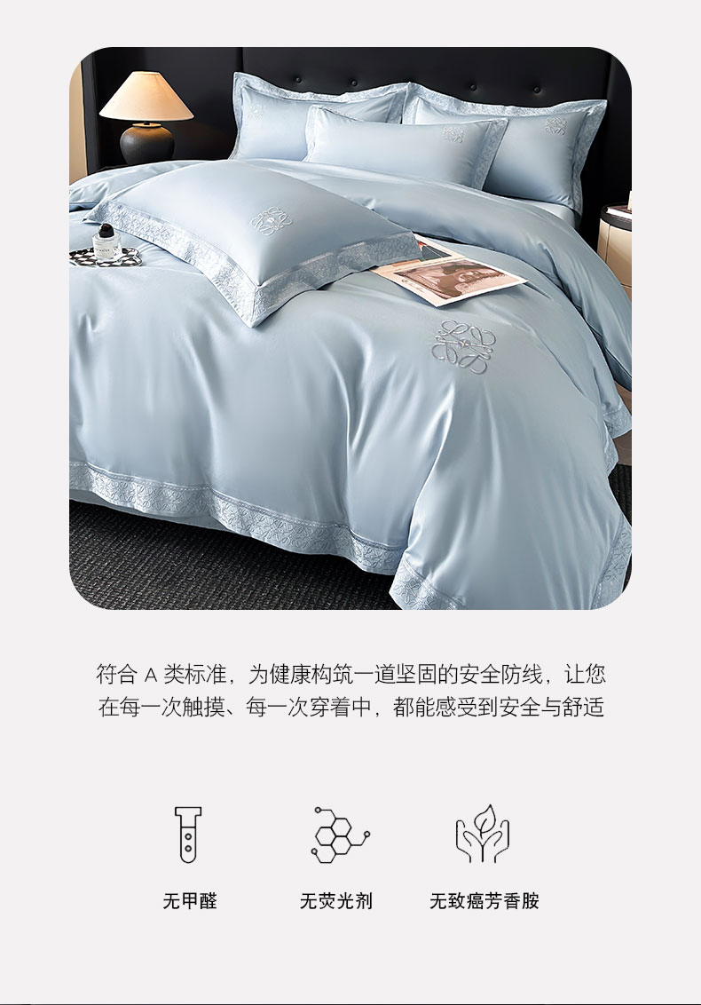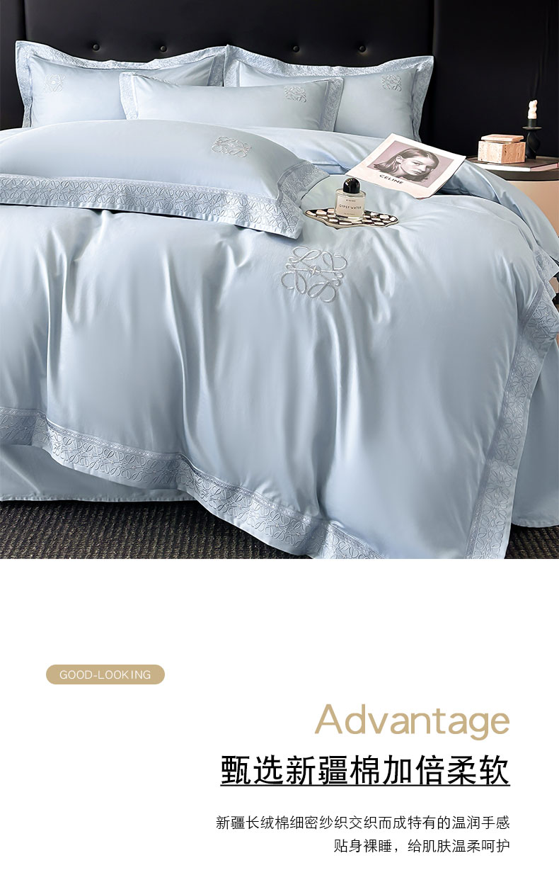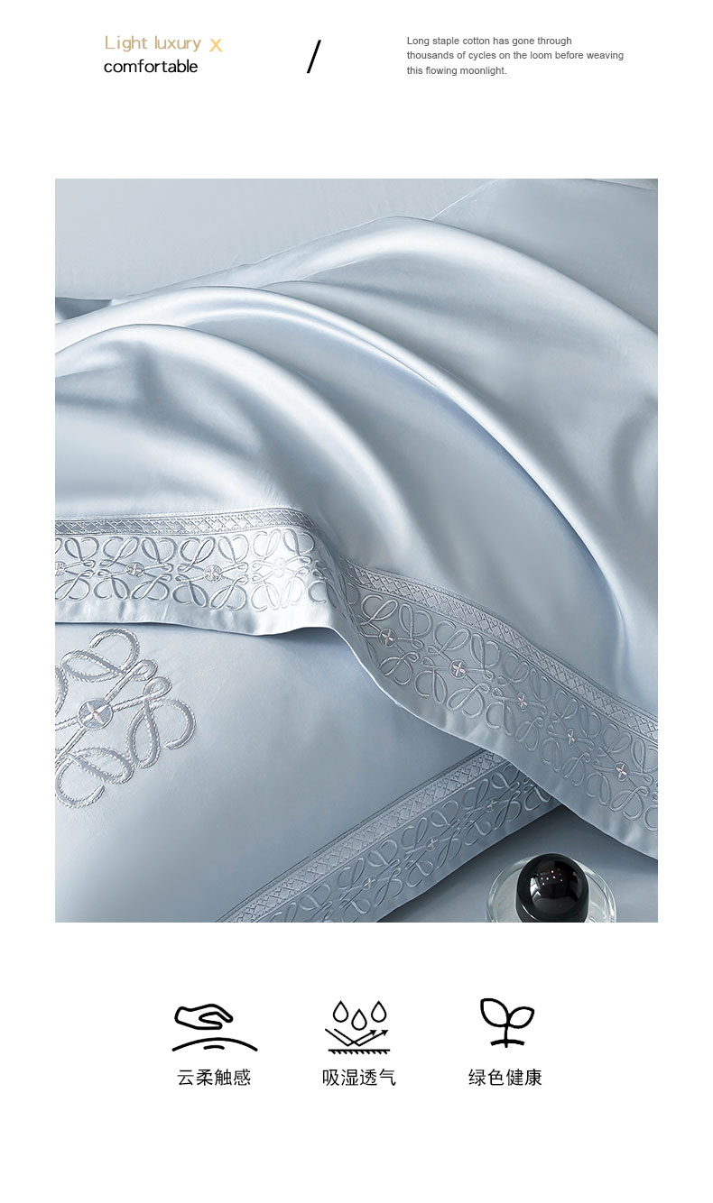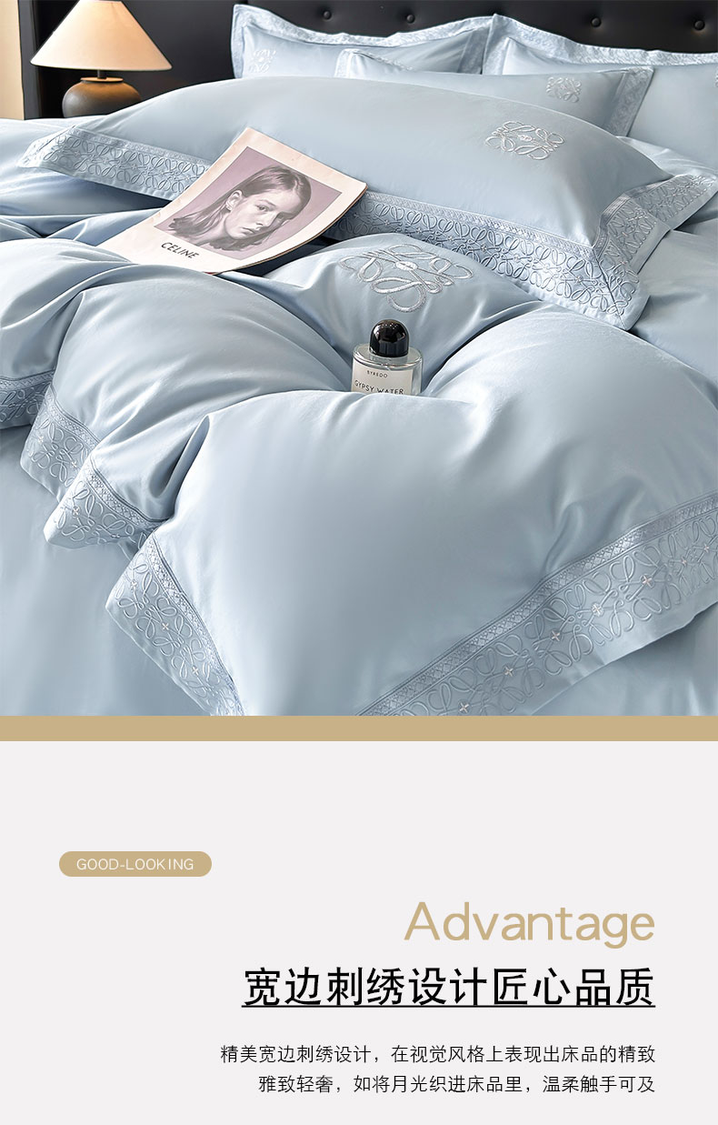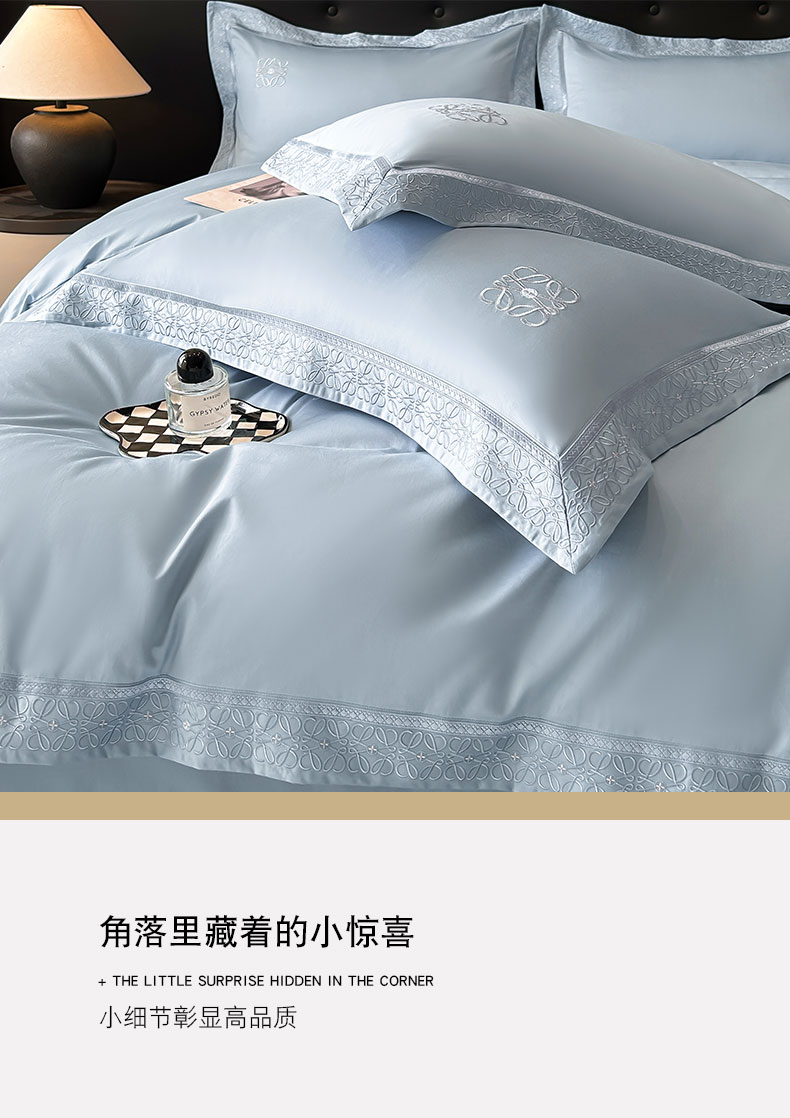 当前位置: 91家纺网 > 商品网购 > 床品套件 > 四件套 > 长绒棉四件套 > 安妮家居 2025新款A类100s长绒棉纯棉贡缎四件套-塞纳 塞纳-絮溪蓝