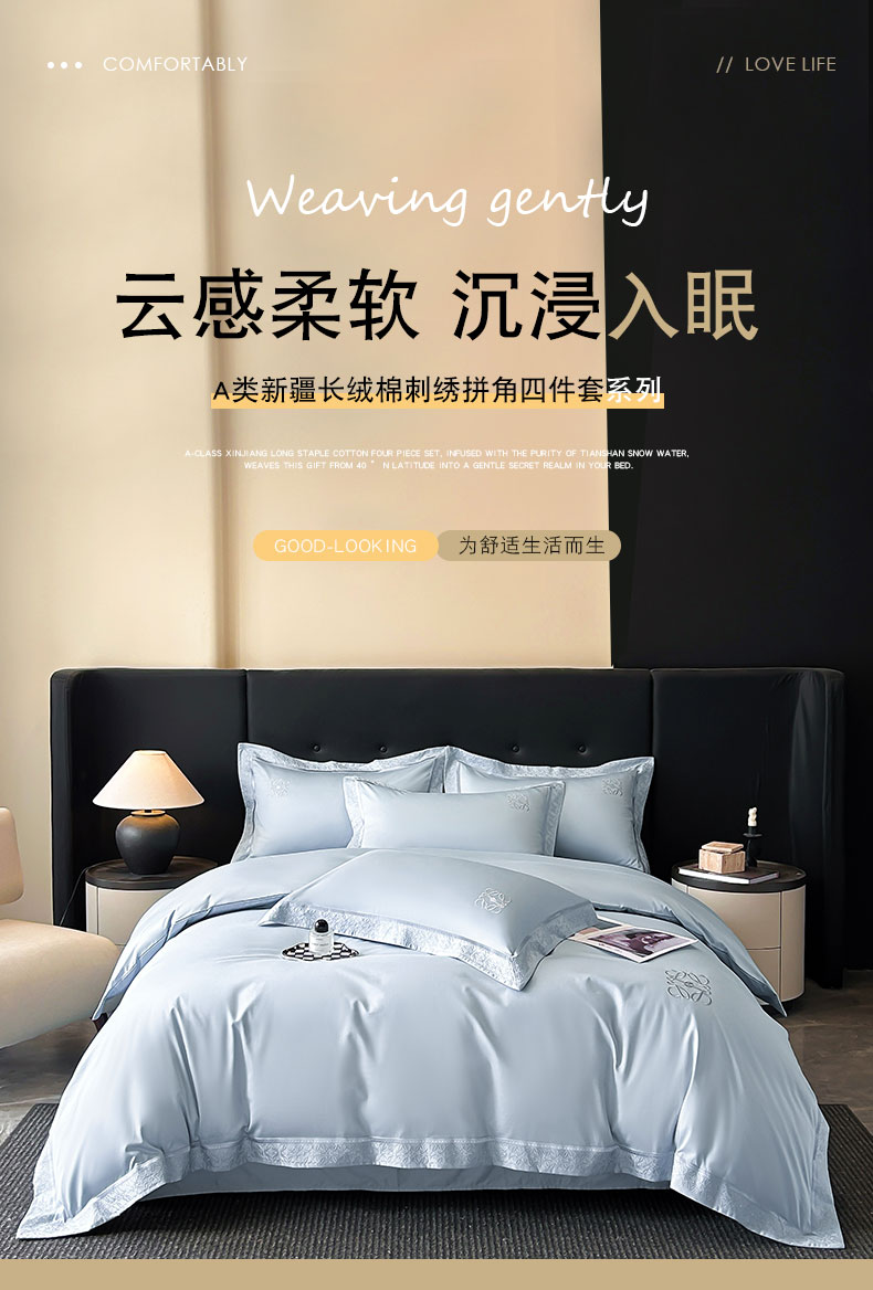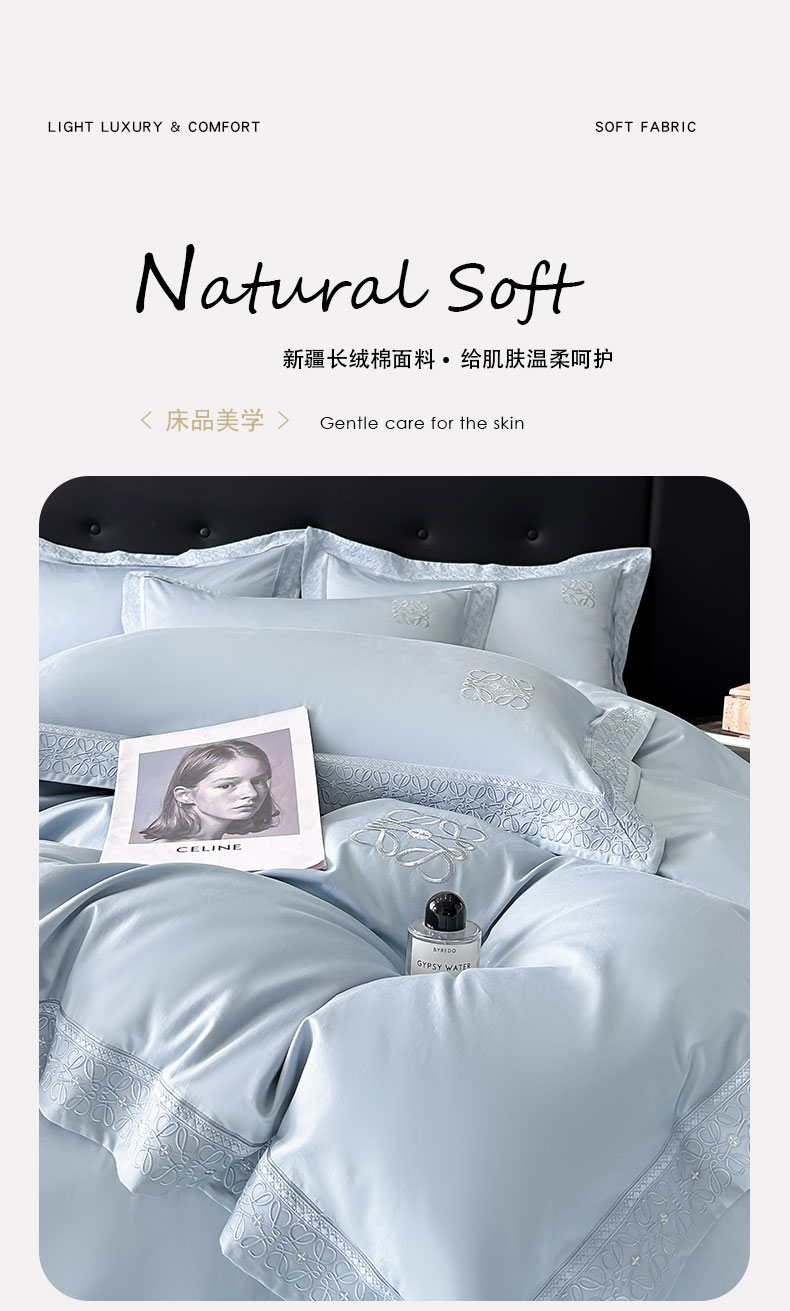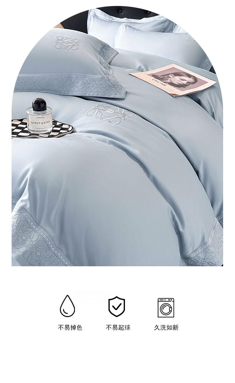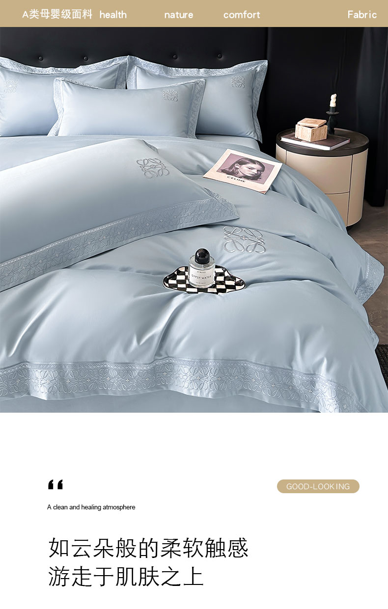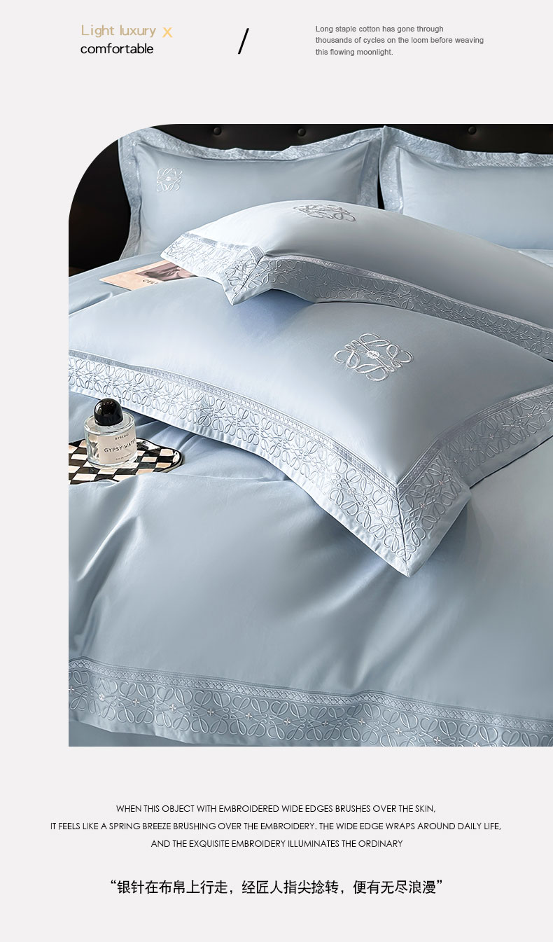当前位置: 91家纺网 > 商品网购 > 床品套件 > 四件套 > 长绒棉四件套 > 安妮家居 2025新款A类100s长绒棉纯棉贡缎四件套-塞纳 塞纳-絮溪蓝