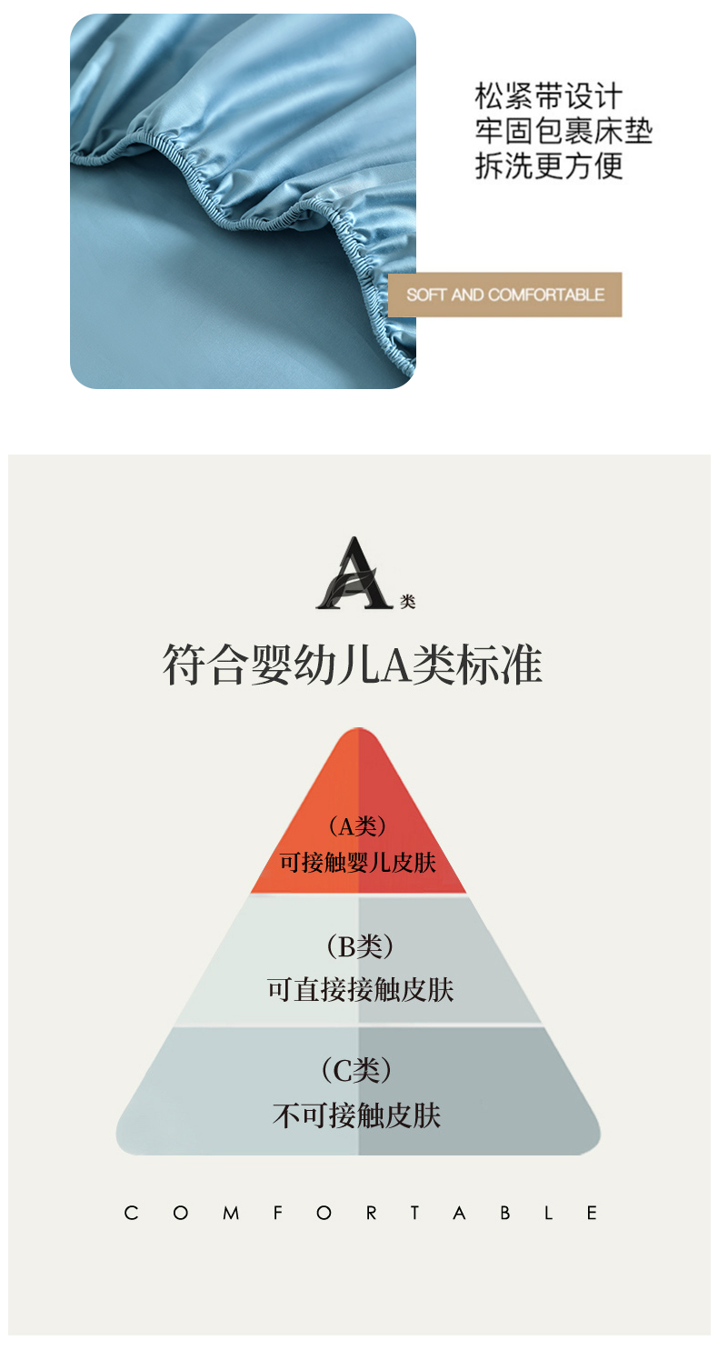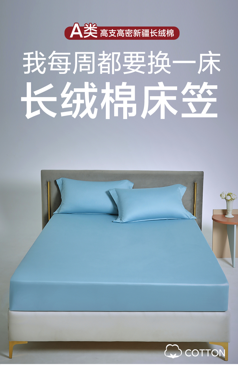 商品名称:柔觉家纺 柔系列A类100支单品床笠 梦幻蓝