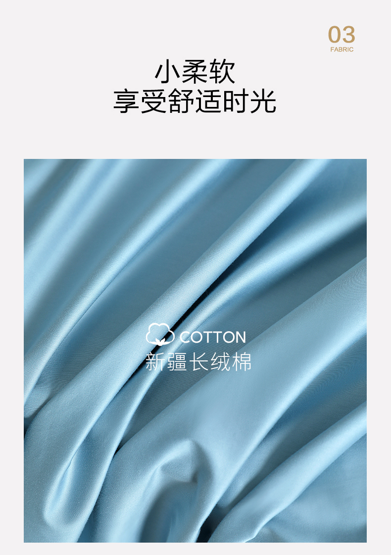 柔觉家纺 天丝刺绣贡缎提花全棉四件套,柔梦-海蓝