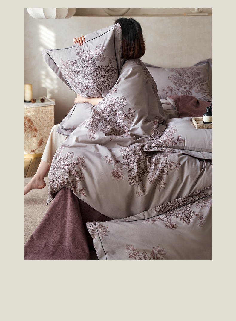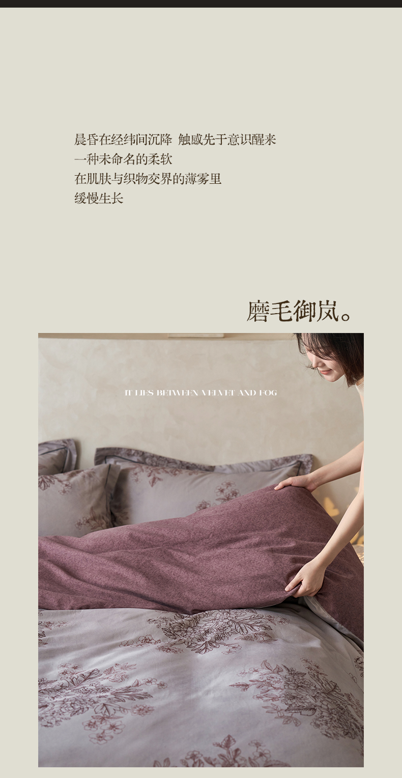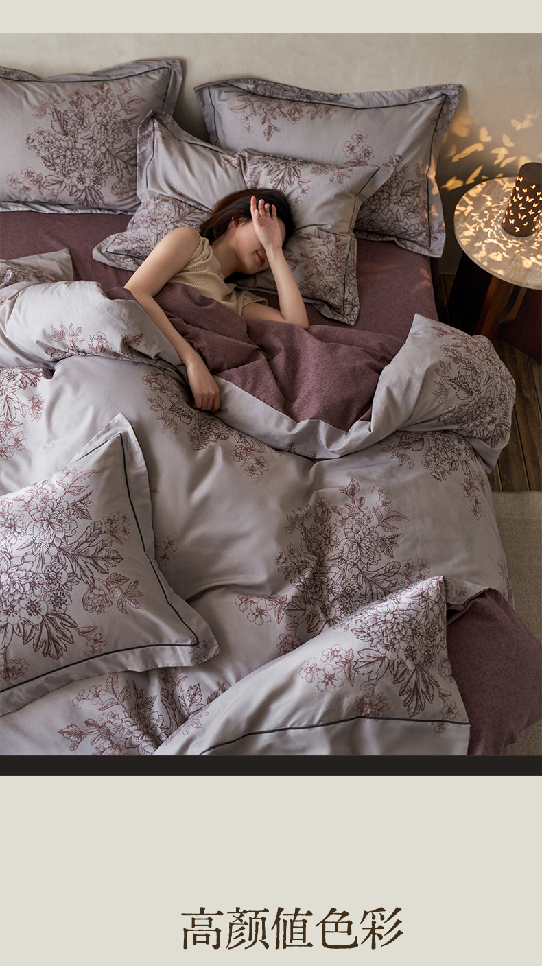 商品名称:涵宸家纺 2025新款全棉磨毛印花四件套-奥罗 素居- 胭