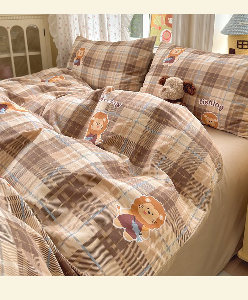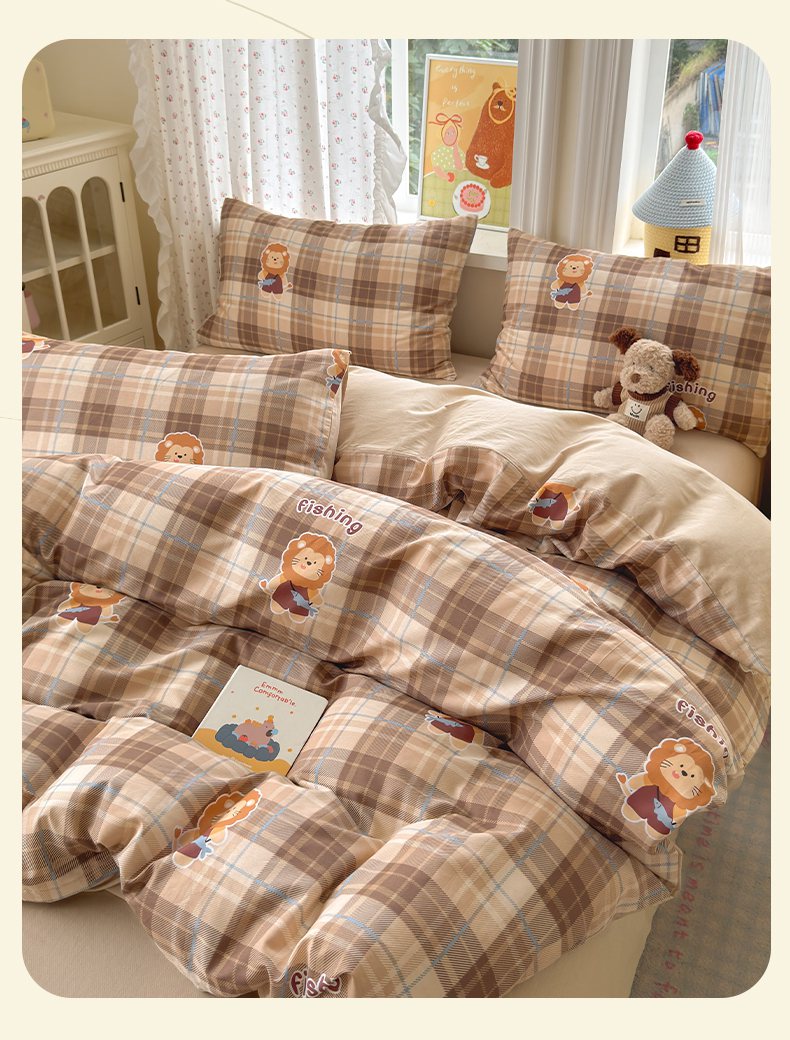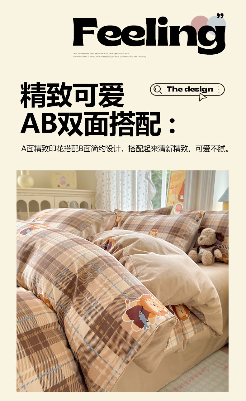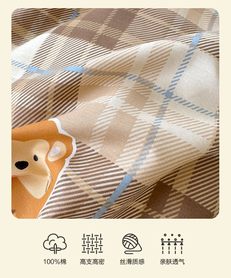 商品名称:清雅福 2026春夏新品全棉13070萌趣系列单被套 森林日记-咖格