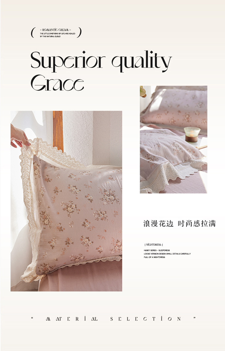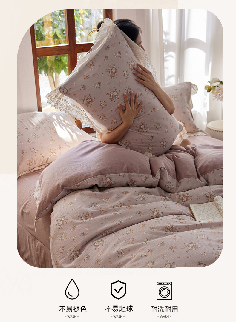 当前位置: 91家纺网 > 商品网购 > 床品套件 > 四件套 > 双层纱四件套 > 清雅福 2026春夏新品韩版全棉双层纱镂空花边系列四件套 落日余晖