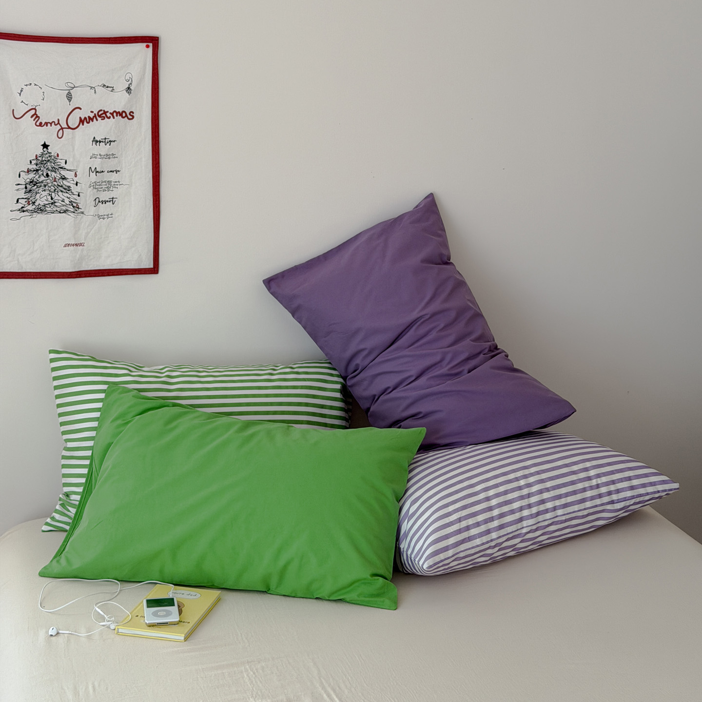 商品名称:艾沁家纺 2026新款全棉纯棉单品枕套 枕套单件 紫色横条-斜纹数码