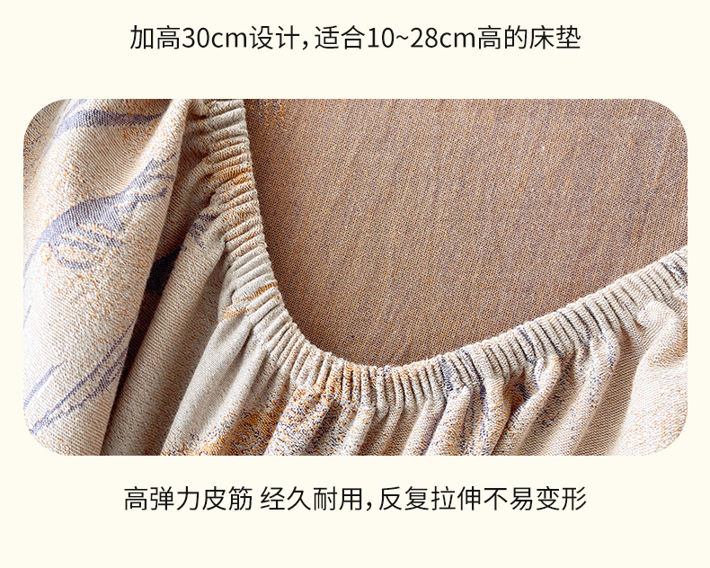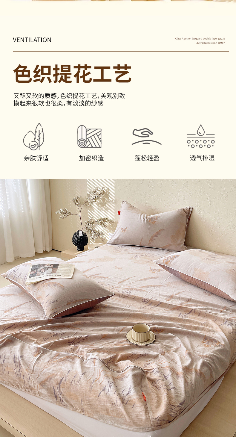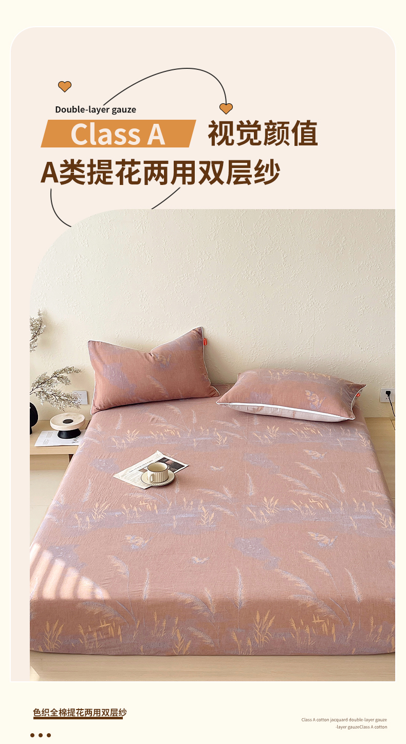商品名称:春皖家纺 2026春夏新款(正反两用)A类提花双层纱单床笠 瑾璃