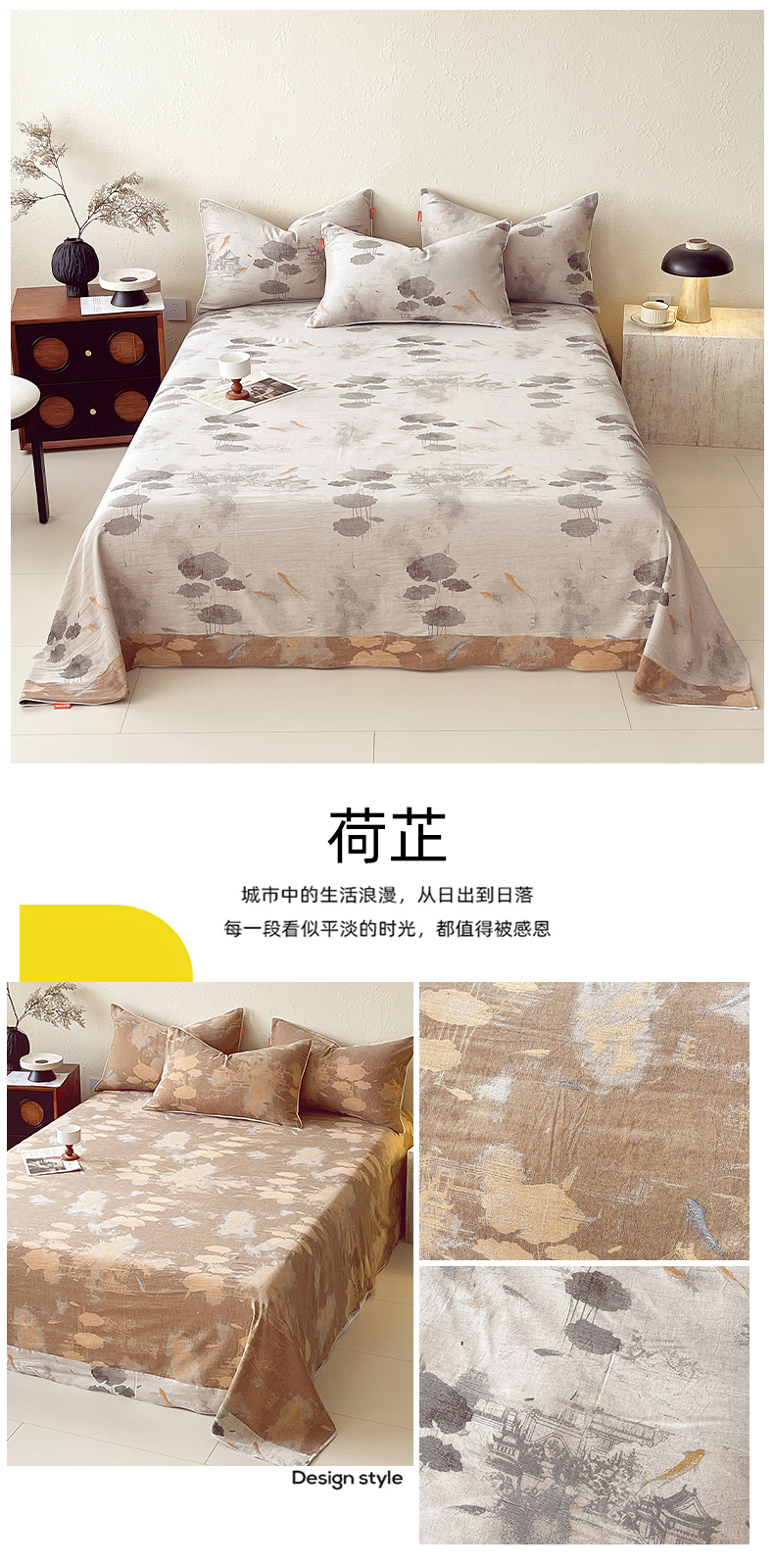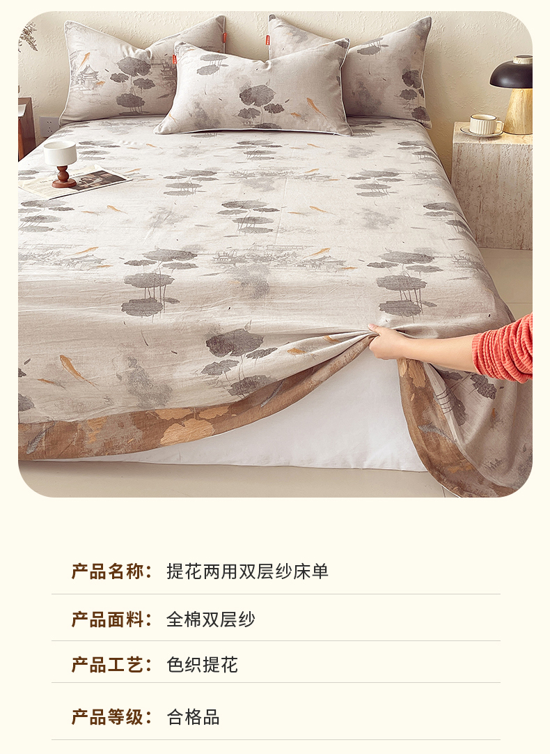 商品名称:春皖家纺 2026春夏新款(正反两用)A类提花双层纱单床单 荷芷