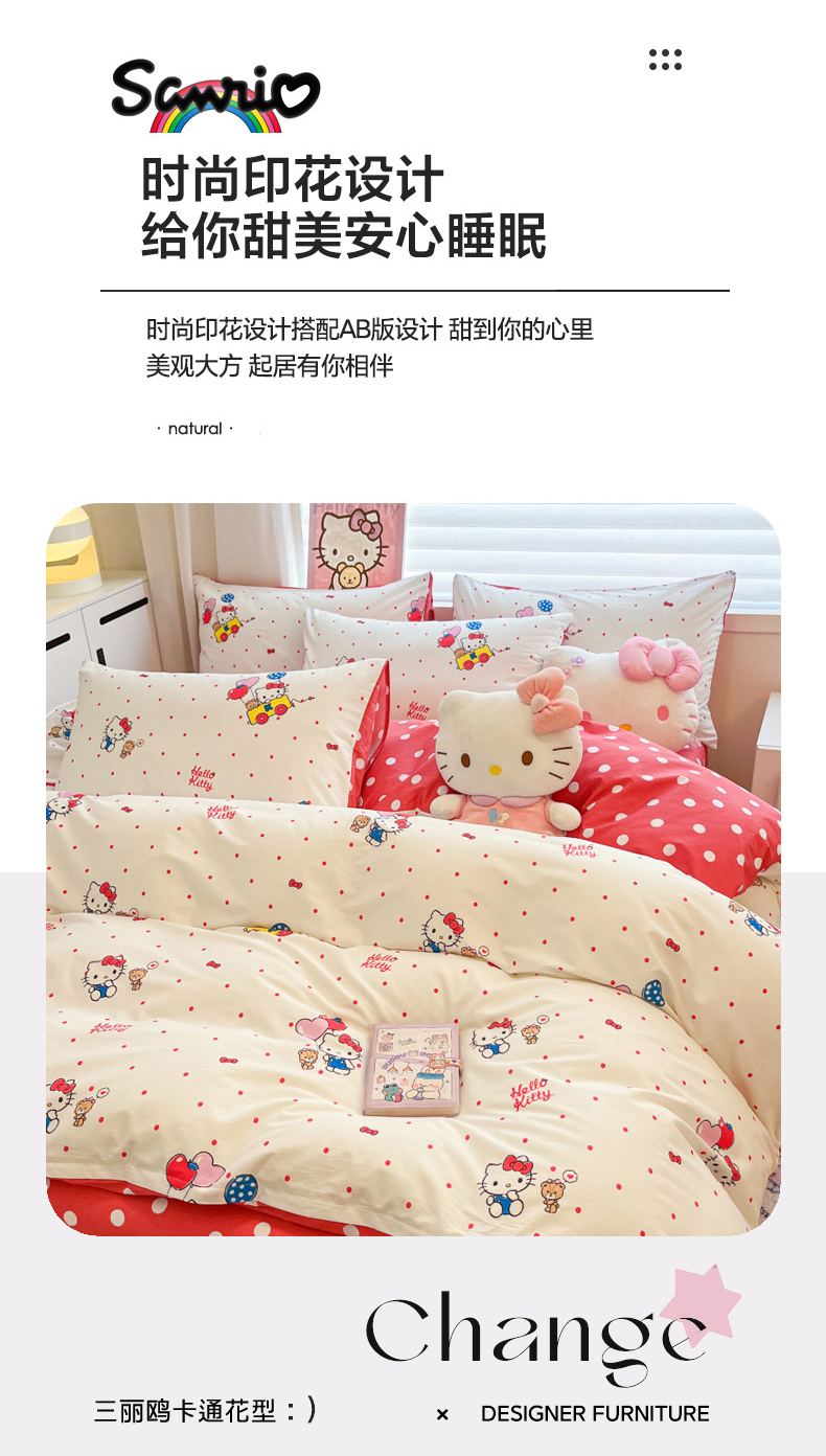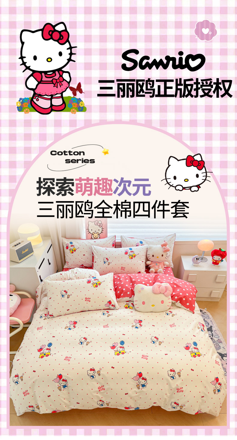 当前位置: 91家纺网 > 商品网购 > 床品套件 > 四件套 > 全棉普通四件套 > 暮思家居 2026新款正版授权三丽鸥全棉纯棉四件套系列-第二批 幸福KT