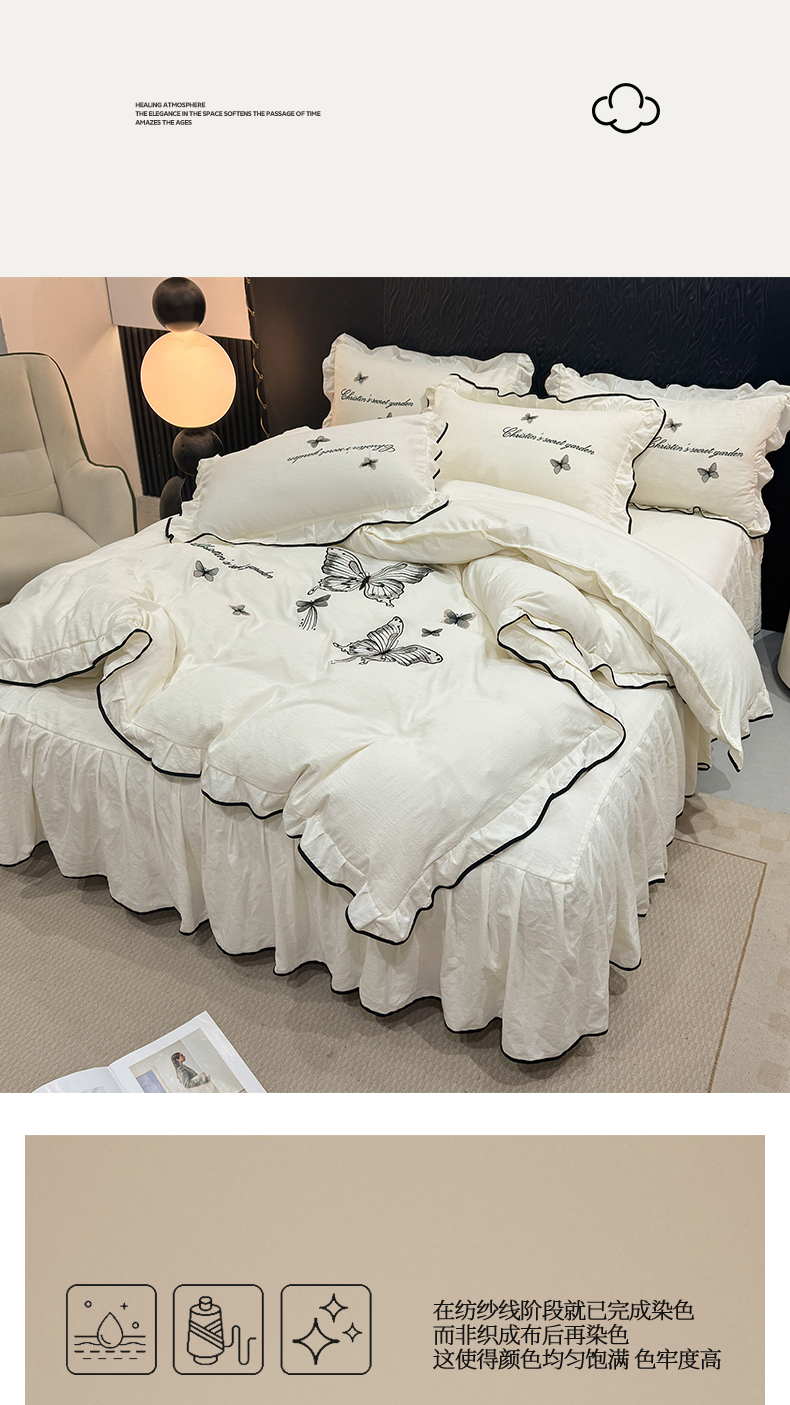 当前位置: 91家纺网 > 商品网购 > 床品套件 > 四件套 > 其它四件套 > 艺玲家纺 2026新款提花色织麻刺绣花边四件套 马到成功-米白