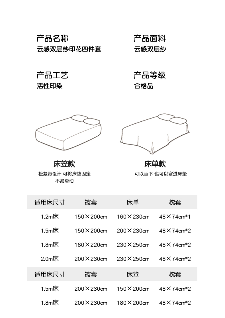 【床笠款】1.8四件套-被套200x230 | ¥48.00 |