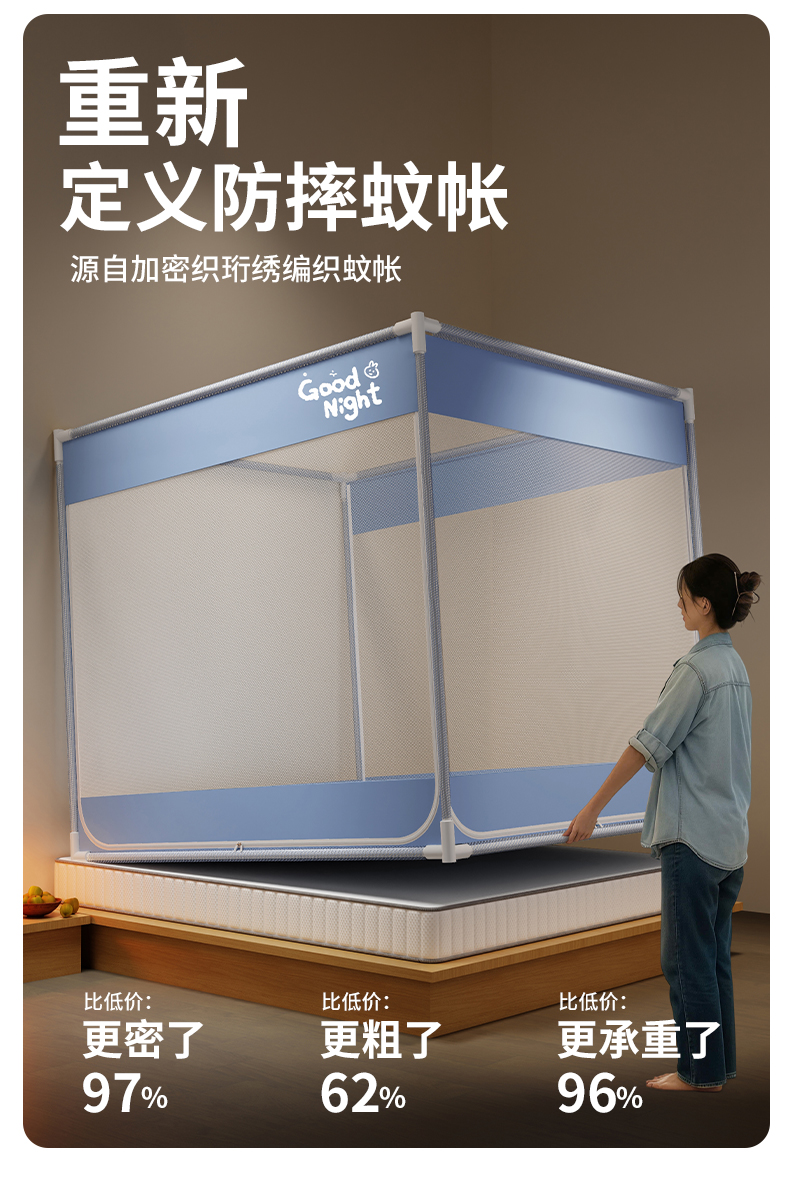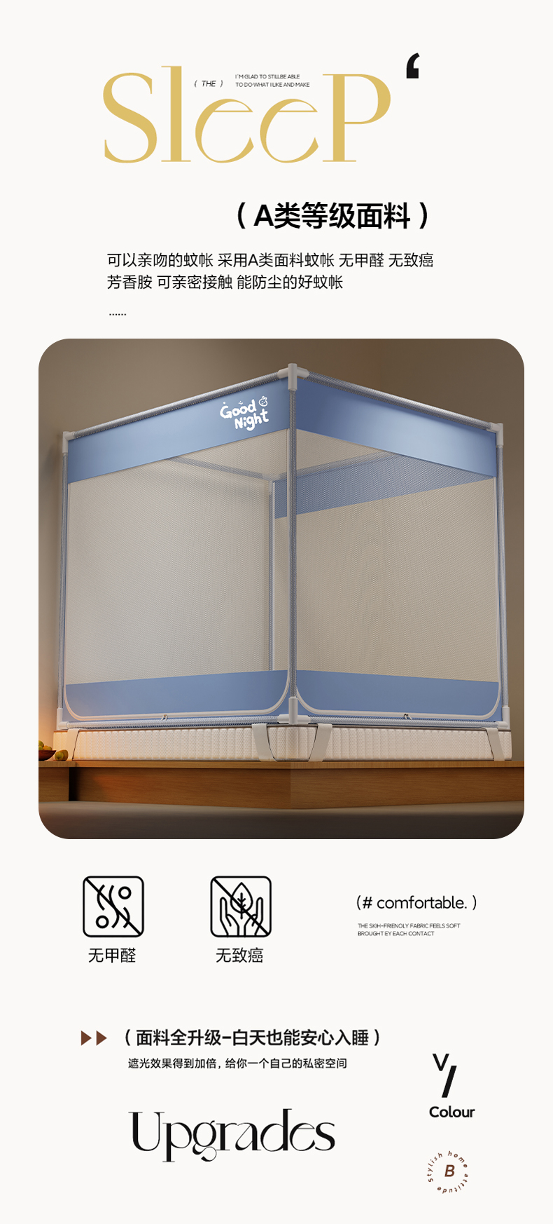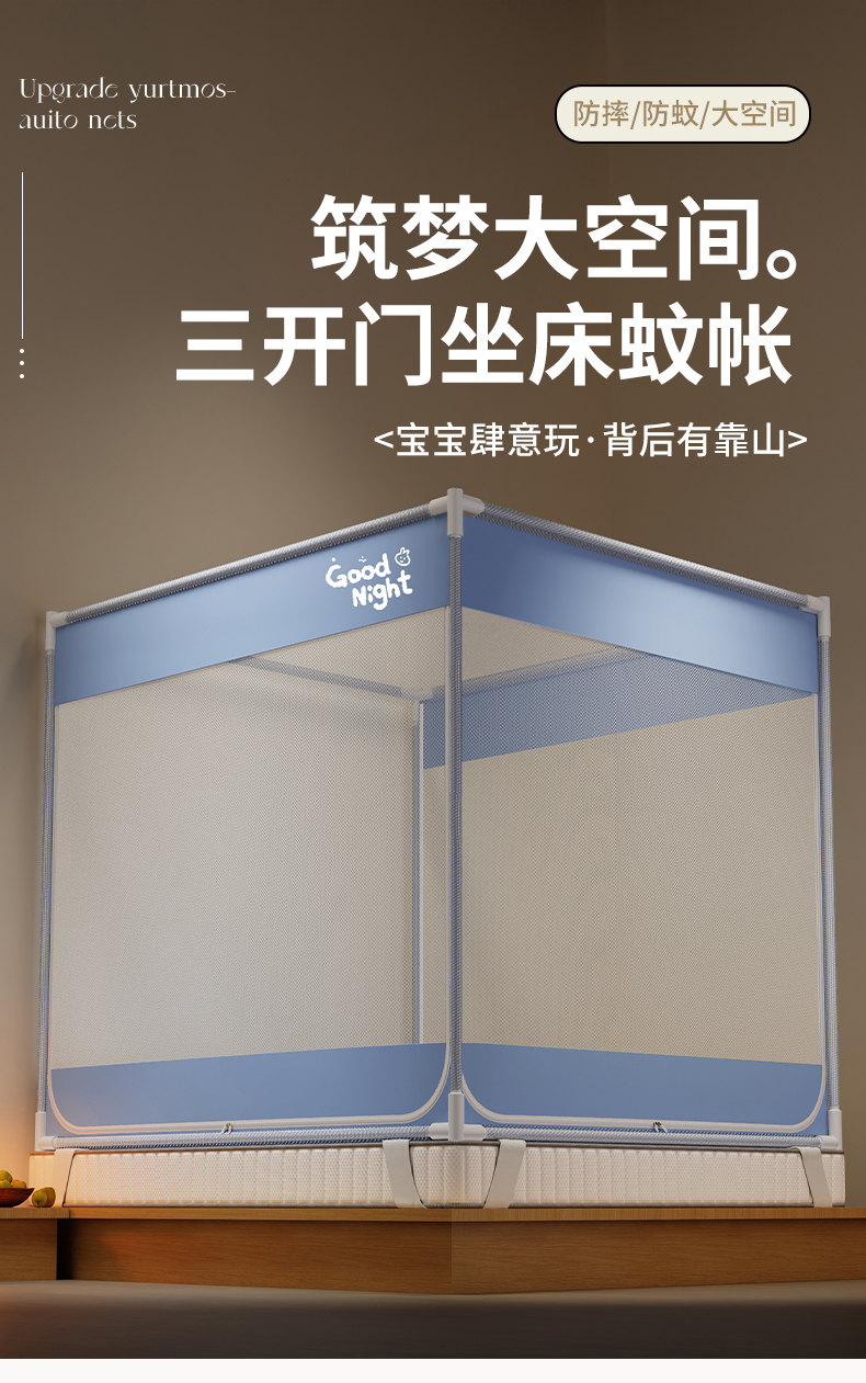 当前位置: 91家纺网 > 商品网购 > 床上用品 > 蚊帐 > 坐床式蚊帐 > 初心家纺 2026新款外穿杆坐床防摔蚊帐-场景一 蓝-字母