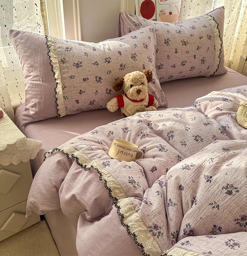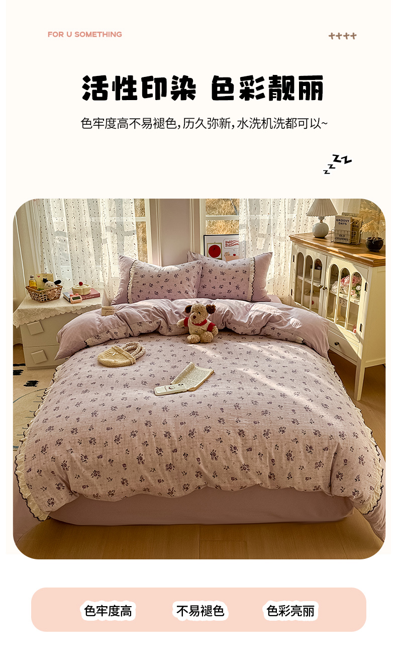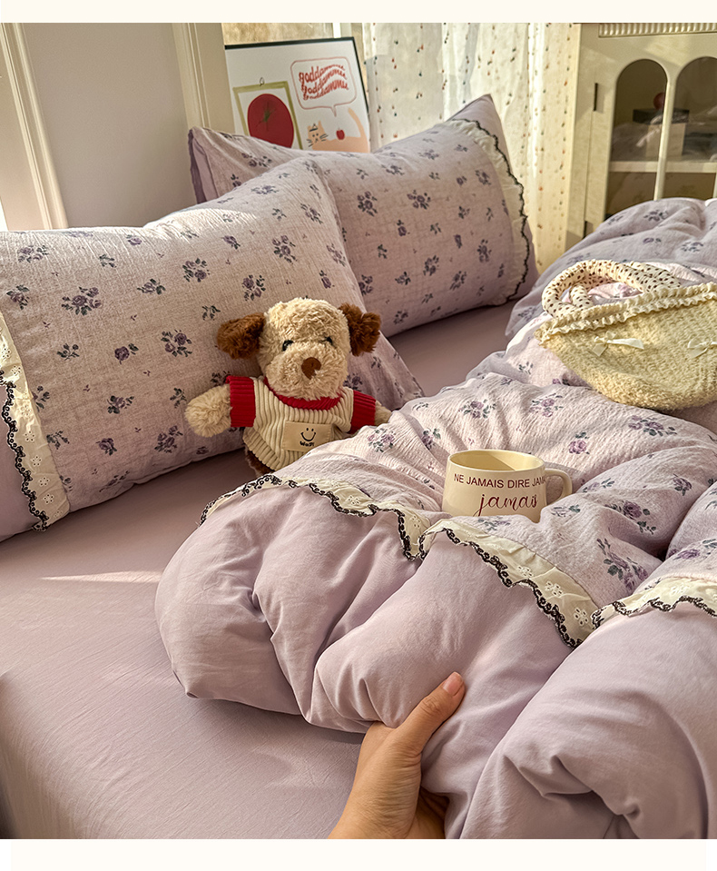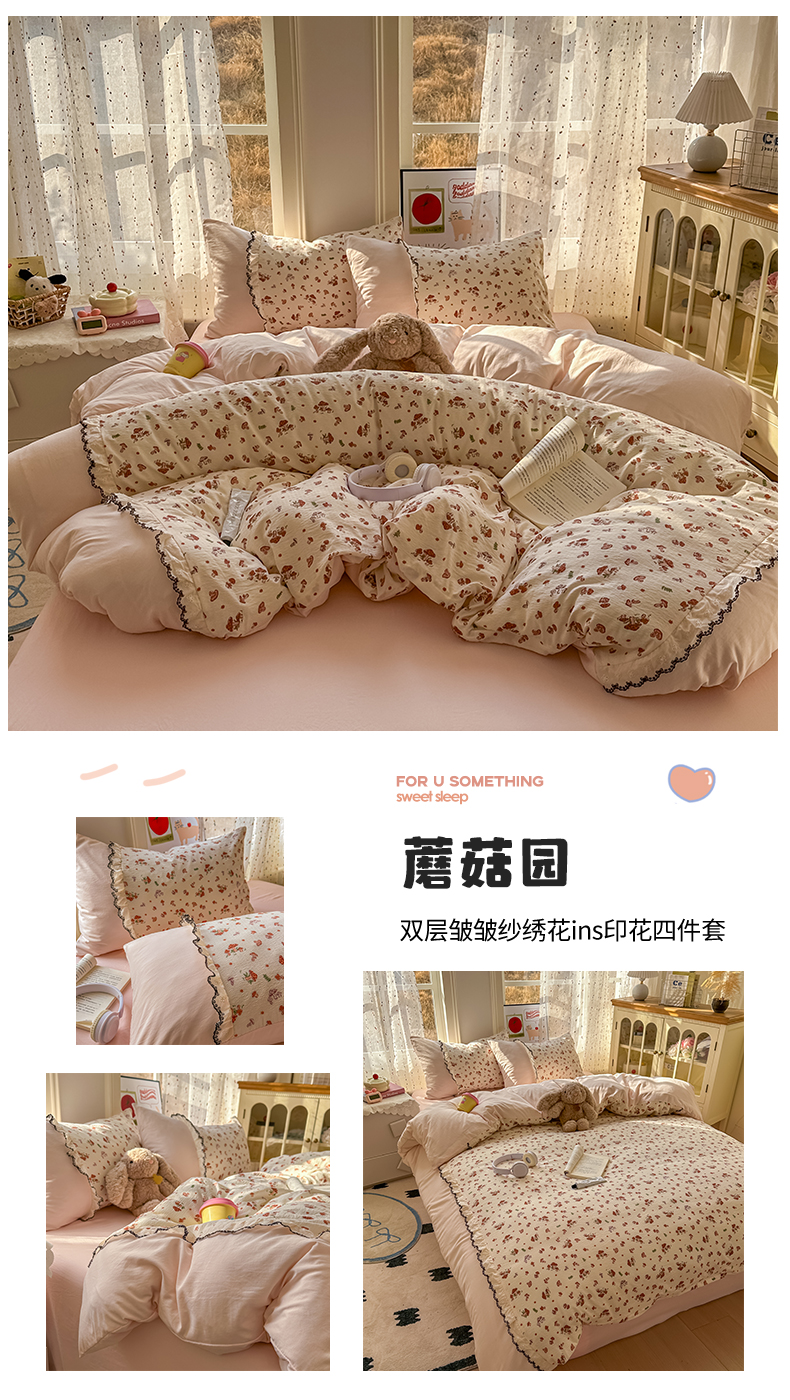 当前位置: 91家纺网 > 商品网购 > 床品套件 > 四件套 > 水洗棉四件套 > 贝凯瑞 2026新款小花边水洗棉绣花ins小清新床单床裙床笠四件套 梵妮