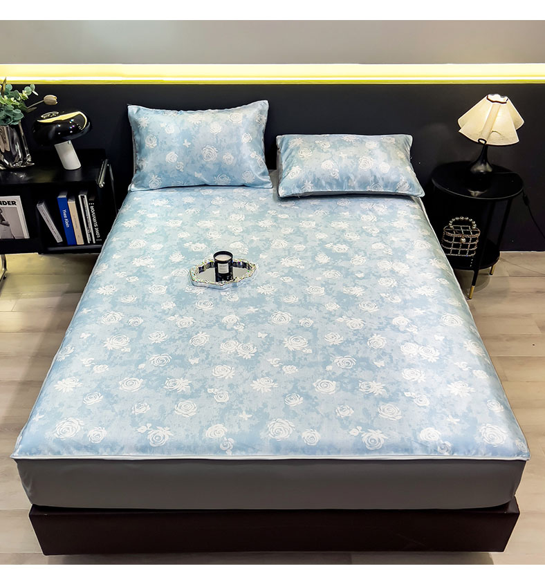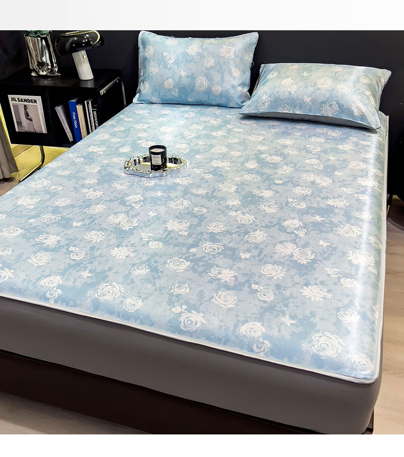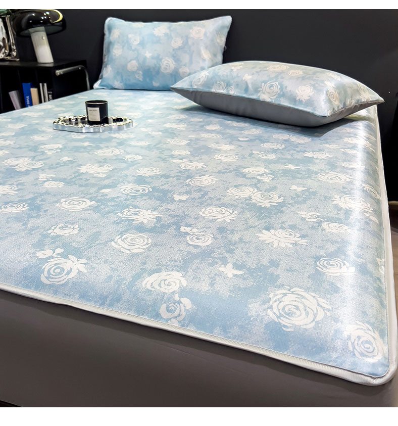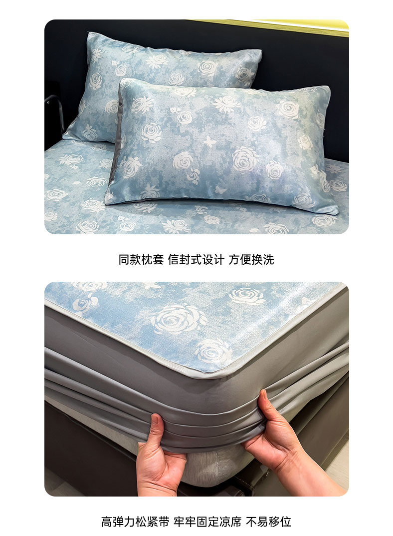许林 2026新款冰丝凉席床单款凉席三件套 玫瑰佳人,玫瑰佳人