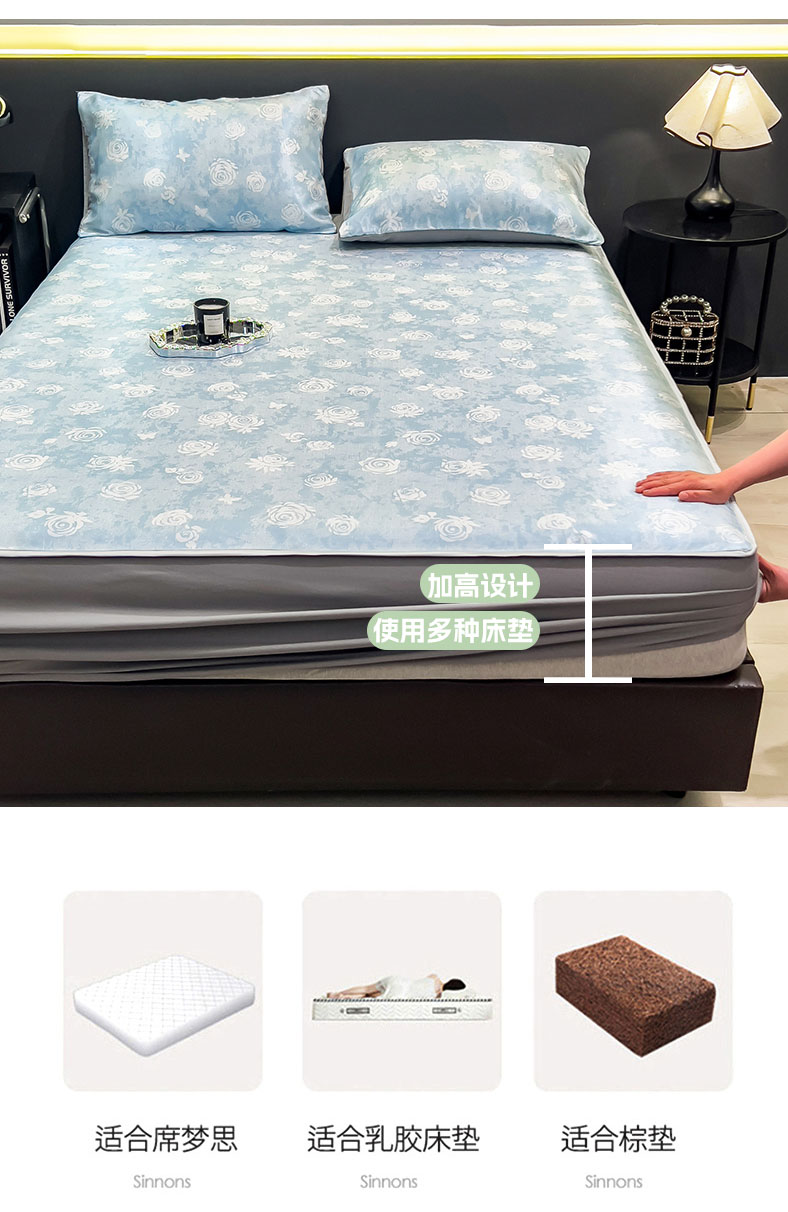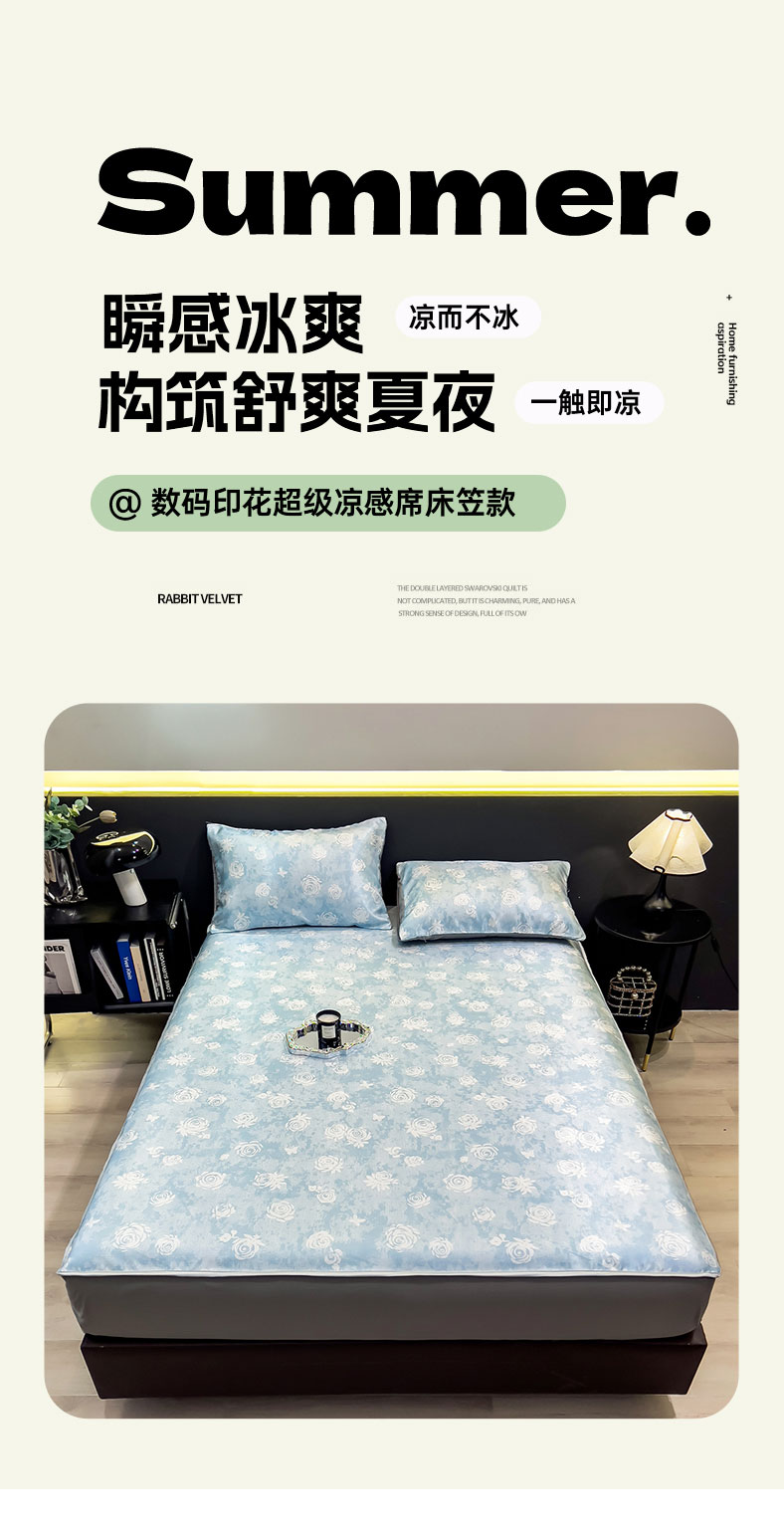 商品名称:许林家纺 2026新款数码印花超级凉感席床笠款 初墨