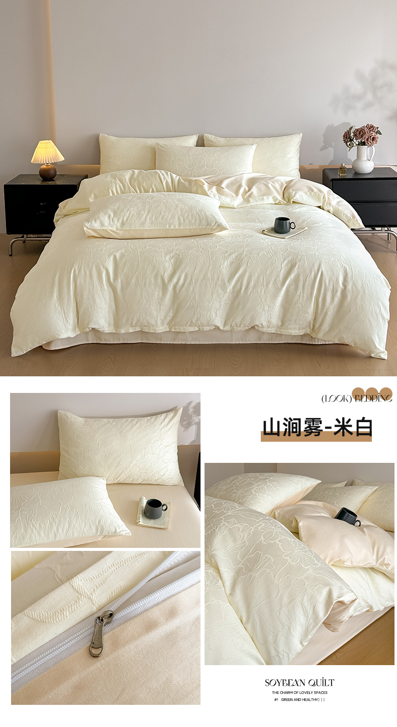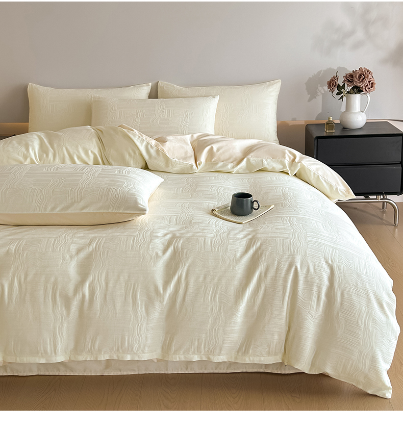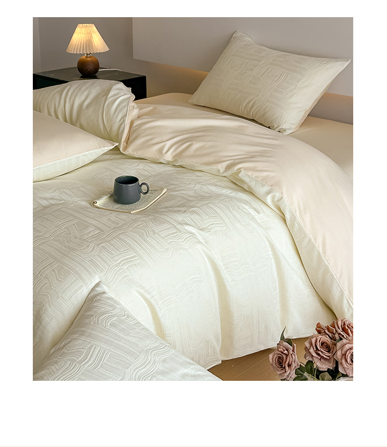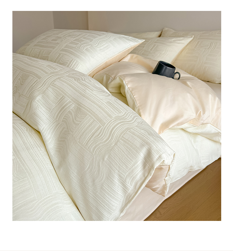 曼之夏 2026新款60支全棉水洗浮雕提花四件套 幻纤影-米白