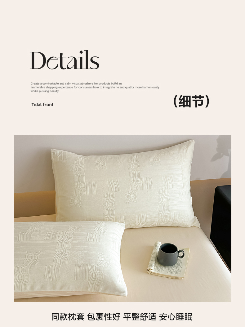 商品名称:曼之夏 2026新款60支全棉水洗浮雕提花四件套 幻纤影-米白
