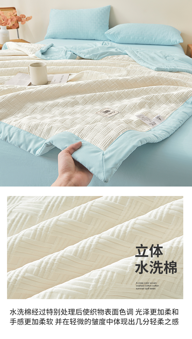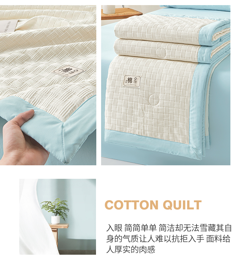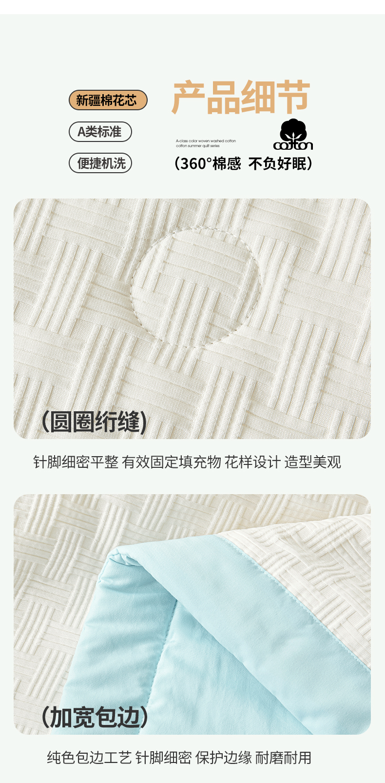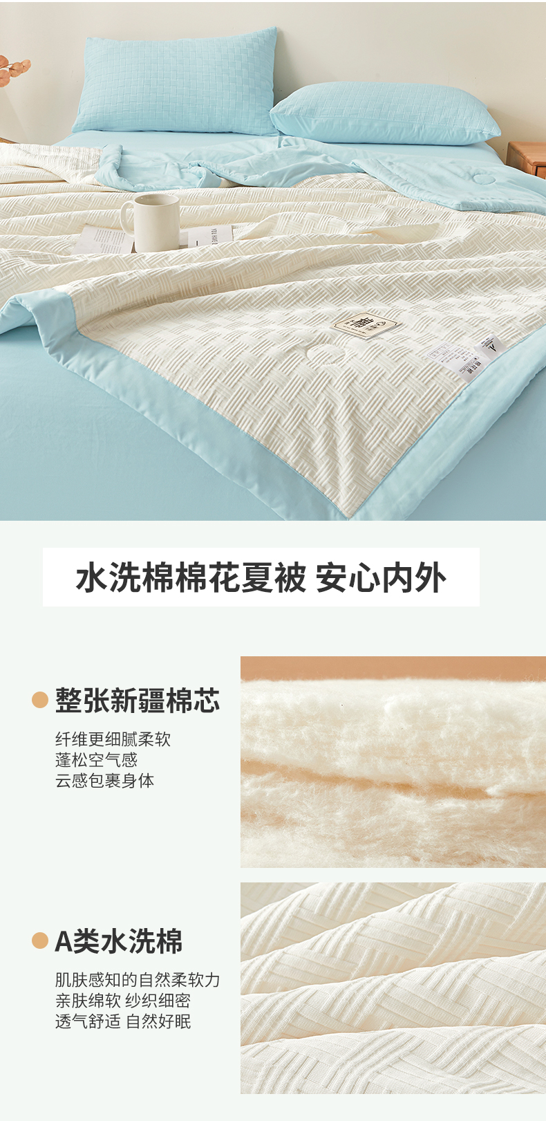 商品名称:好睡棉 2026新款华夫格双拼夏被夏凉被空调被新疆棉花被子 白拼蓝