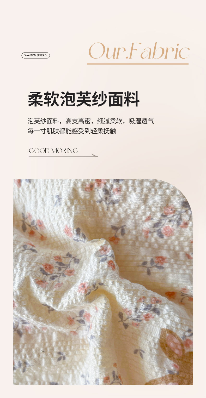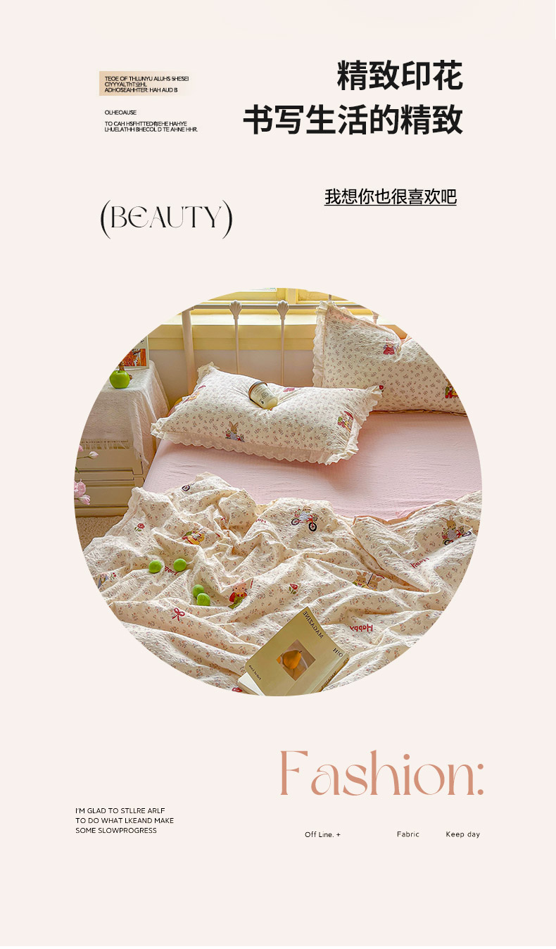 (总)金梦拉家纺 2025新款提花纱布棉双层纱皱皱纱四件套,微醺玫瑰,梦华录,花开半夏,漫山紫野,薄荷初夏,点点草莓,法式浪漫,粉杏绿,花颜,惠心,桔梗紫,咖调蝴蝶结,快乐狗,梨落,林间兔,绿意,绿茵,满园春色,曼塔庄园,萌萌小兔,雾野山茶,小野菊,寻春,樱桃,月梨漫香,芝士黄,枝蔓绿,紫线调,紫樱落